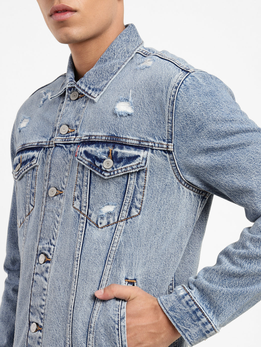 This Levi's jacket skillfully strikes a balance between function and style. Featuring a blue color and solid pattern makes it the ideal go-to jacket for looking on point. Pair it with your newest, most favorite sneakers to rock the look.