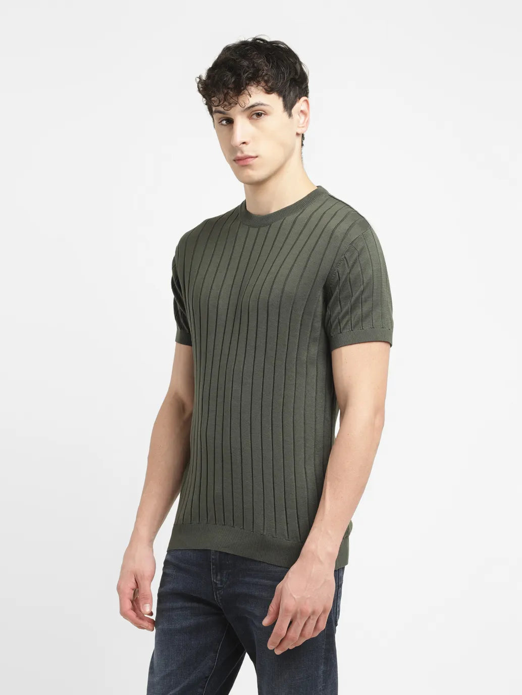 This green slim fit Levi's sweater is the perfect layer to slip-on for going out and about. It features a crew neck and striped pattern, bringing a contemporary edge to a classic piece. 1. Designed for a slim fit 2. Features comfortable short sleeves 3. Knitted from fine pure cotton