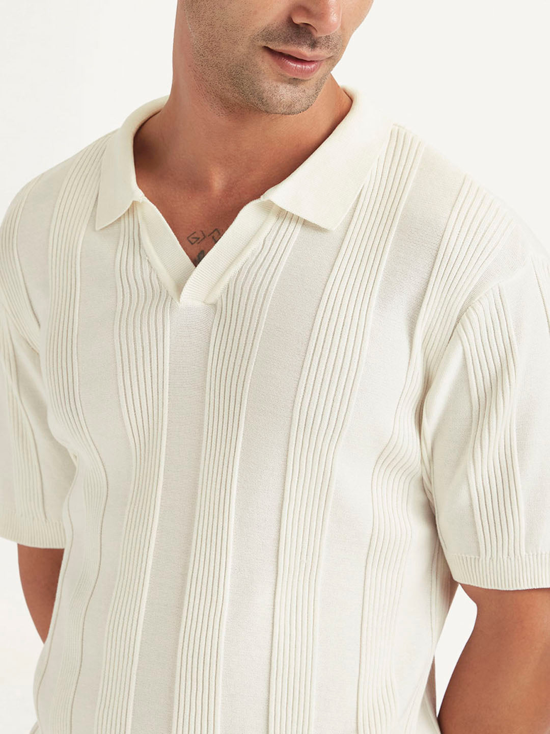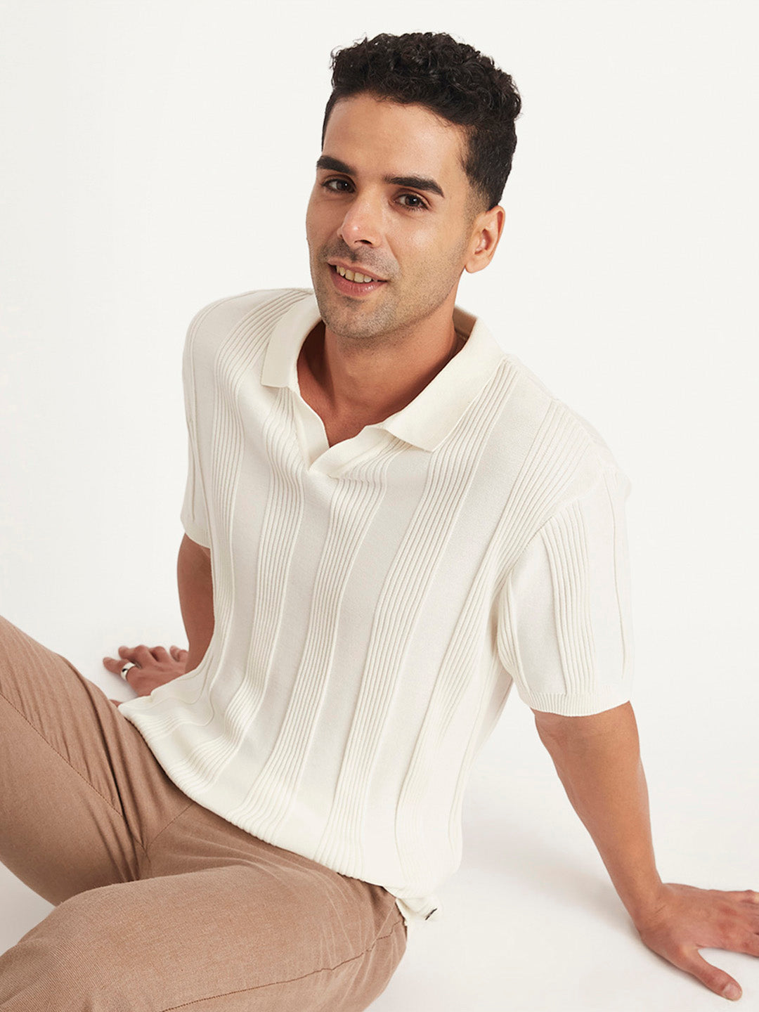 Switch up your everyday wardrobe with this trending t-shirt from Levi's. Ideal to wear for all seasons, this versatile t-shirt features a polo collar and half sleeves. Comfortable essential with a striped pattern.