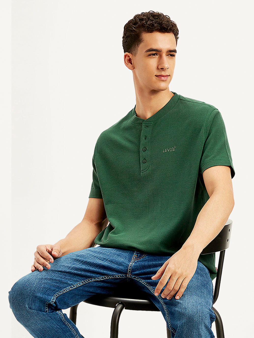 Switch up your everyday wardrobe with this trending t-shirt from Levi's. Ideal to wear for all seasons, this versatile t-shirt features a henley neck and half sleeves. Comfortable essential with a textured pattern.