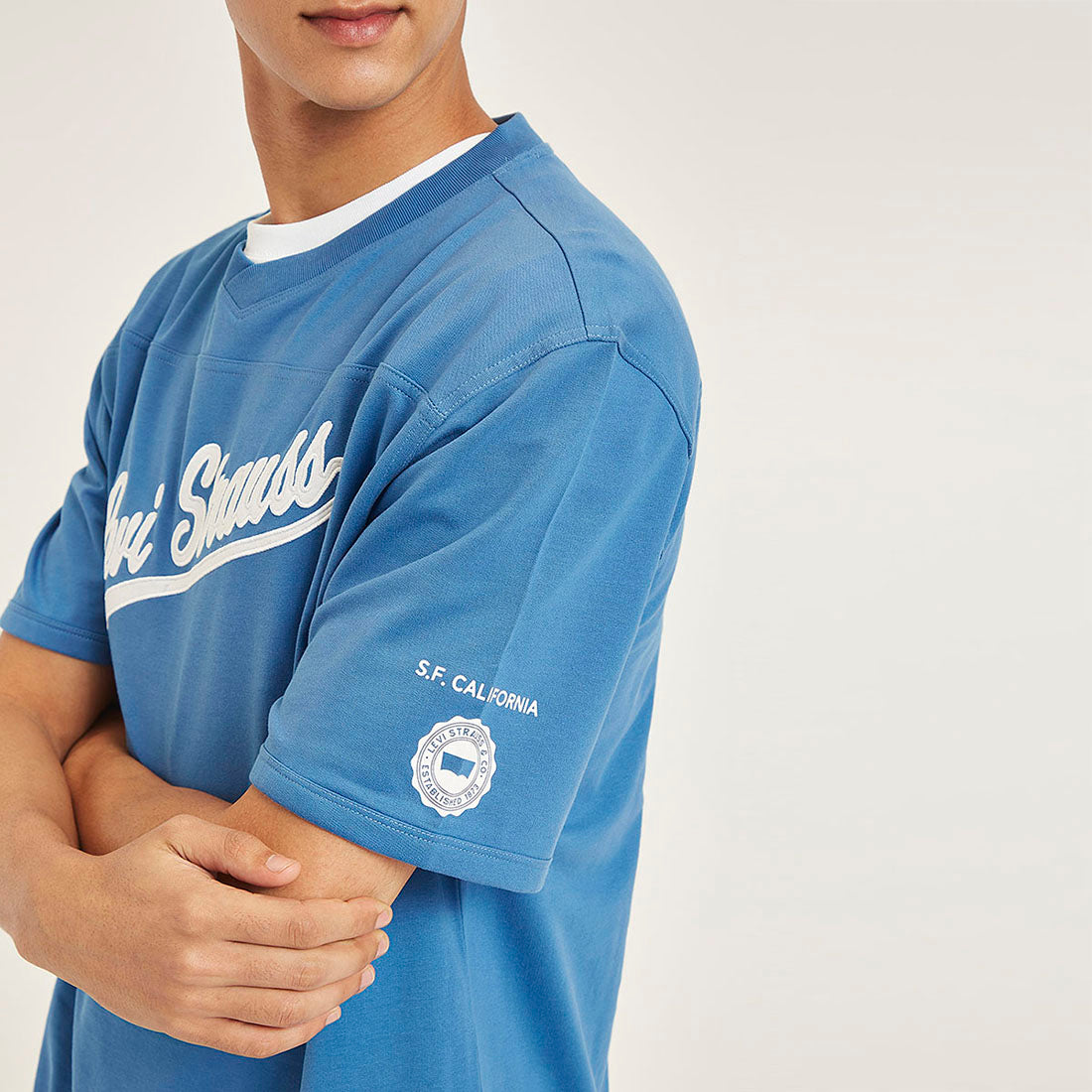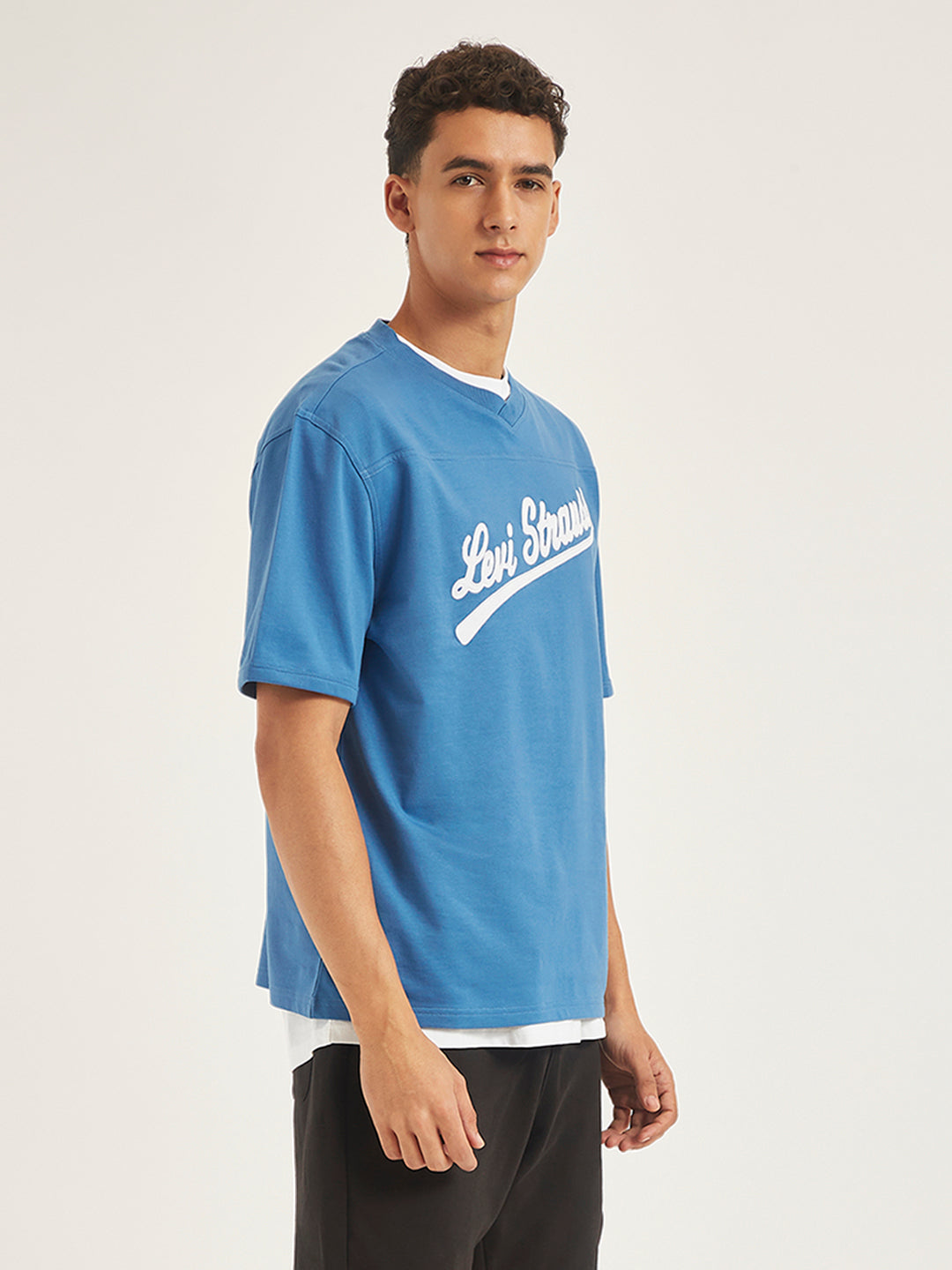 Made from good quality cotton, this easygoing Levis blue tshirt is perfect to add to your casual collection. Features a crew neck and a typography pattern.