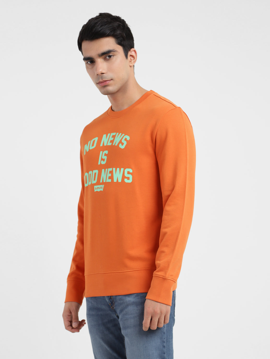 Flaunt your effortless casual style when you don the trendy and versatile Men's Orange Crew Neck Sweatshirt. This orange colour sweatshirt features a distinctive graphic logo pattern. Tailored with a crew neck, thislong sleeves cotton sweatshirt is a must-have.