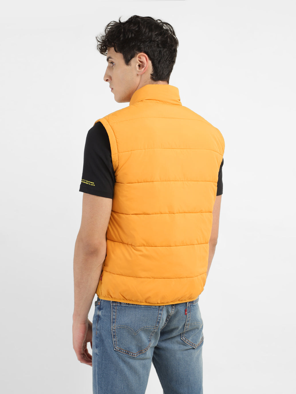 This Levi's jacket will undoubtedly become your next favorite piece to wear regularly. With its band neck and sleeveless style, it is the perfect layering piece for the transitional season. Whether paired with a turtleneck t-shirt or a round-neck t-shirt, this jacket complements all.