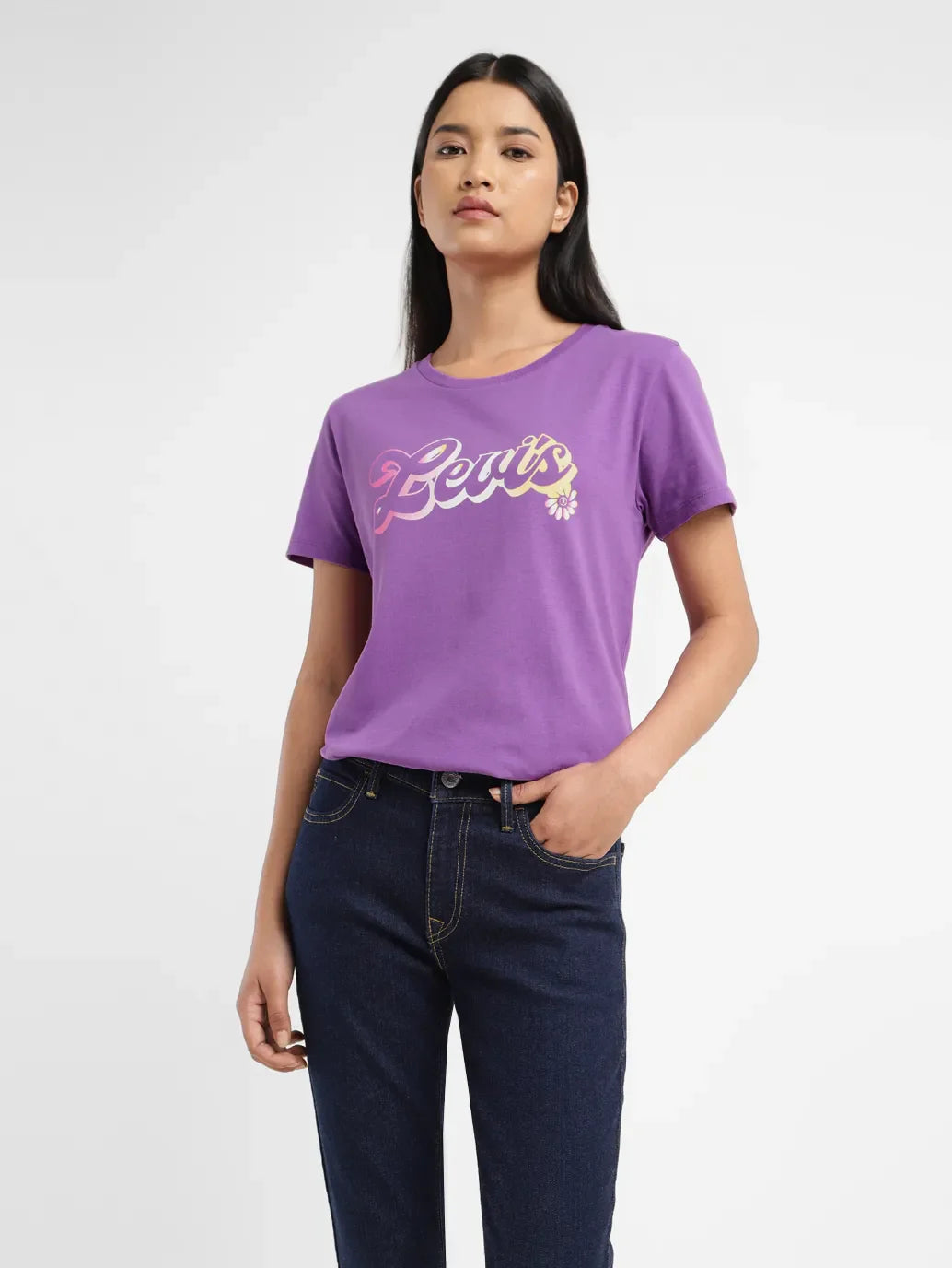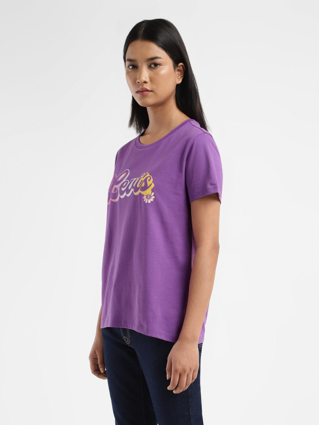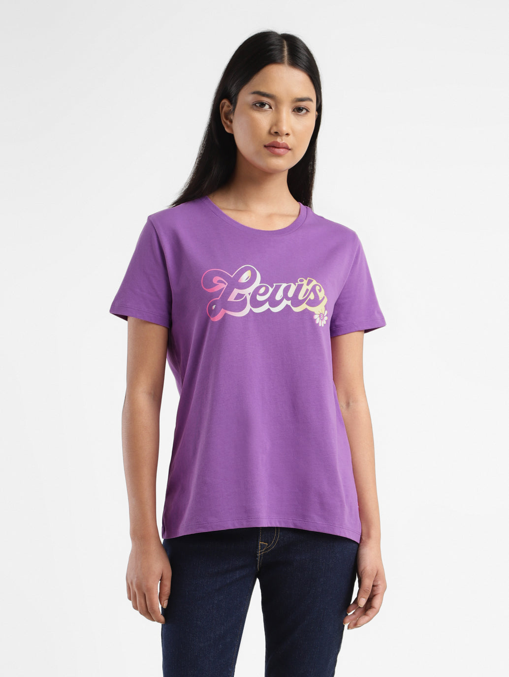Every woman's wardrobe needs a dependable T-shirt, and this purple t-shirt delivers! With a crew neck and short sleeves, this Levi's t-shirt exudes charm. Effortlessly cool, it's guaranteed to elevate your casual wardrobe like no other. 1. Features a crew neck 2. Made from comfortable pure cotton 3. Cut in a flattering regular fit