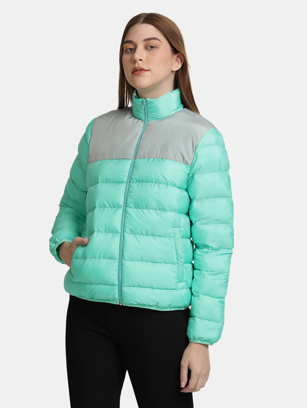 Highlight your style by donning the chic and versatile Levi's Women's Turtle Neck Quilted Jacket. Boasting a quilted pattern, this Green jacket is a must-have. This jacket is crafted from nylon material and features sleeveless sleeves.