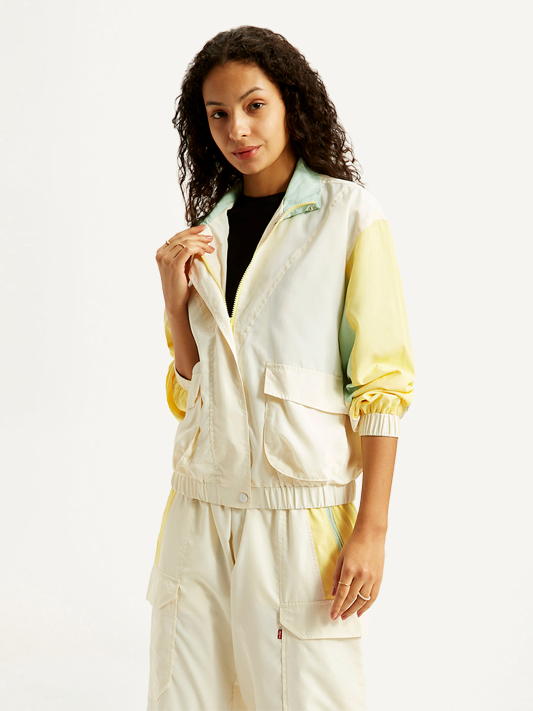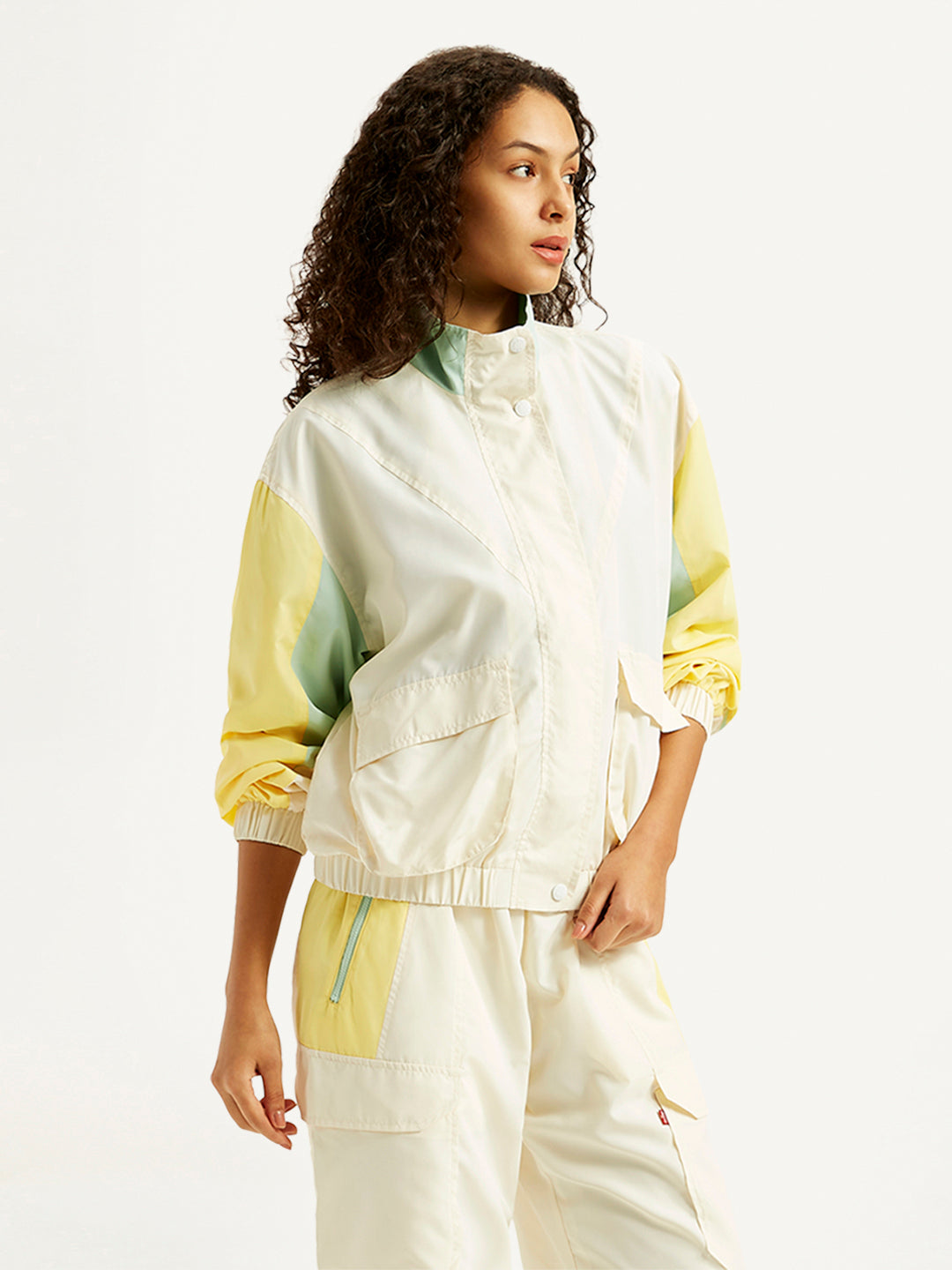 • Women's Colorblock White High Neck Jacket - Styleshot View