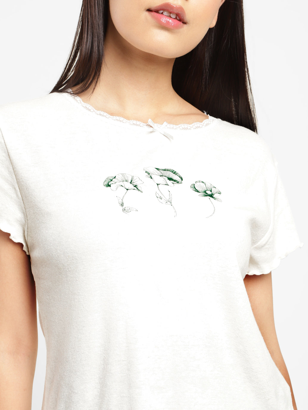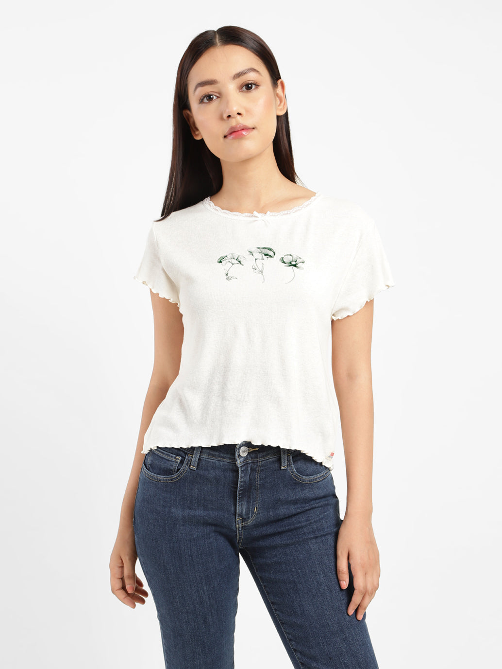 Inspired by one of the first knitwear pieces we made in the early 1900s, Levi's Dry Goods was first resurrected in the late'90s—and now, it's back again. Meet the Graphic Dry Goods T-Shirt: with just the right amount of detail—like a lettuce edge hem, lace trim, flower graphic and a tiny bow—this simple-yet-feminine knit is easily paired with your Levi's® jeans for a truly iconic look. More than 140 years after inventing the blue jean, one thing is clear: Levi's clothes are loved by the people who wear them - from presidents to movie stars, farmers to fashion icons, entrepreneurs to everyman.'Live in Levi's'asserts with confidence and pride that Levi's clothes are indeed for everybody who's not just anybody.