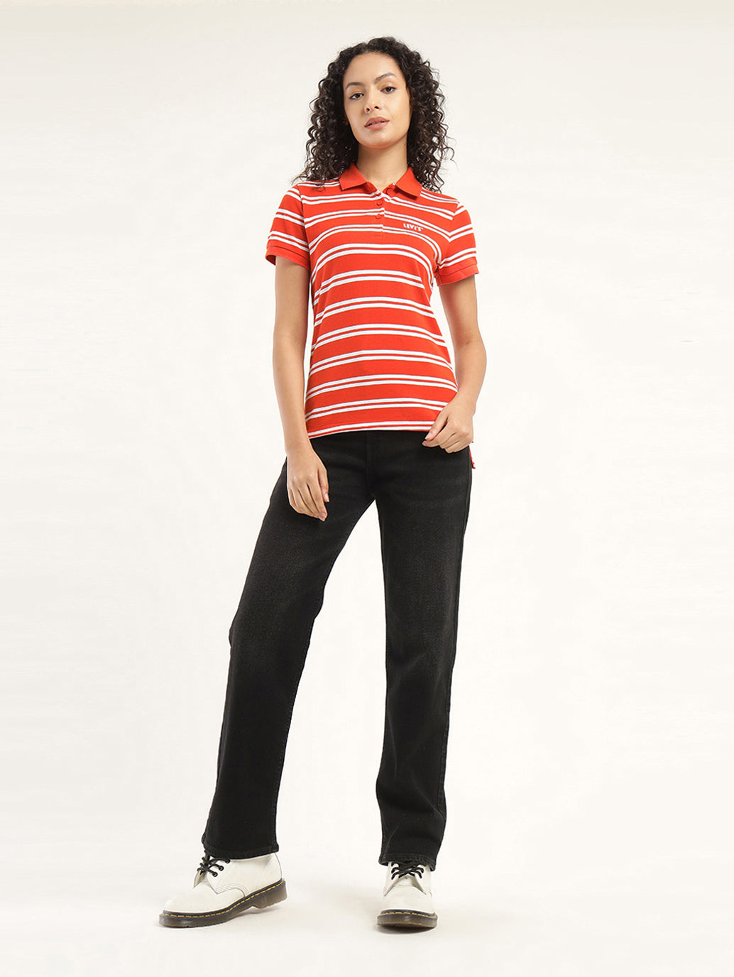 Every woman's wardrobe needs a dependable T-shirt, and this striped polo t-shirt delivers! With a polo collar and short sleeves, this Levi's t-shirt exudes charm. Effortlessly cool, it's guaranteed to elevate your casual wardrobe like no other.