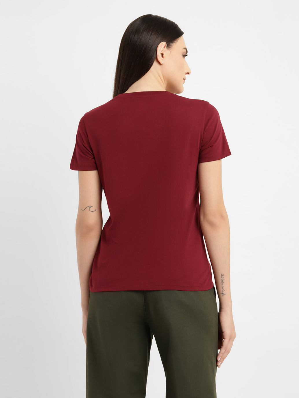 Don't settle for less with your basics. This crew neck t-shirt by Levi's adds an understated edge to your casual look. This maroon t-shirt is simple and stylish. Pair it with a denim jacket and shorts.