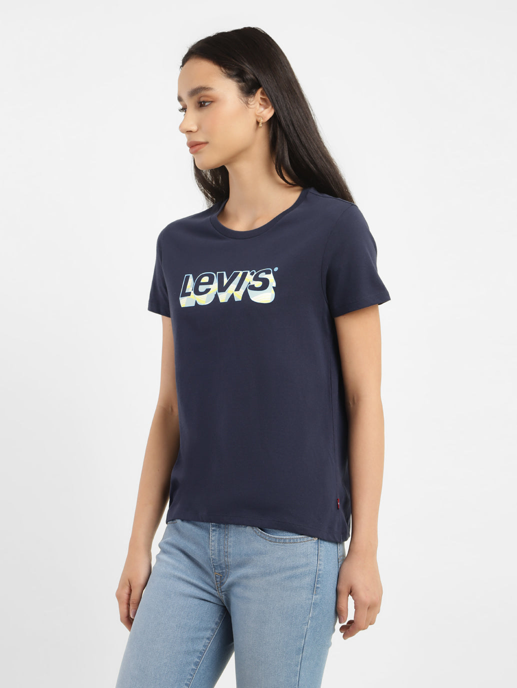 Upgrade casual days, effortlessly with this easy-to-wear fit. This Levi's t-shirt adds a contemporary twist to off-duty style with its graphic pattern and blue color. Pair it with flared jeans and boots.