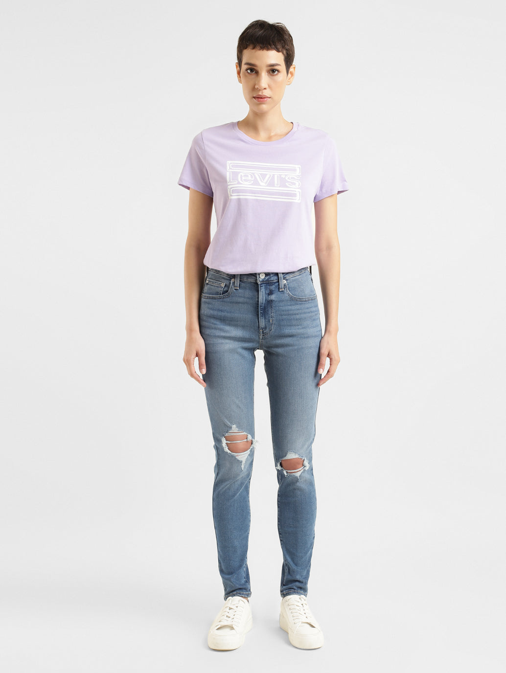 It's Casual, its Chic, its definitely Classic. Our 721 High Rise Skinny is a modern pin-up style with a high waist jean fit. This is a staple in your skinny jean collection, the one you'll wear over and over. Get yourself a pair of women's skinny jeans today. Be the star of your show in this pair of 721 skinny fit, indigo jeans from Levis. This full-length denim features a highly distressed look. This pair can be combined with anything and everything, and you are good to go!