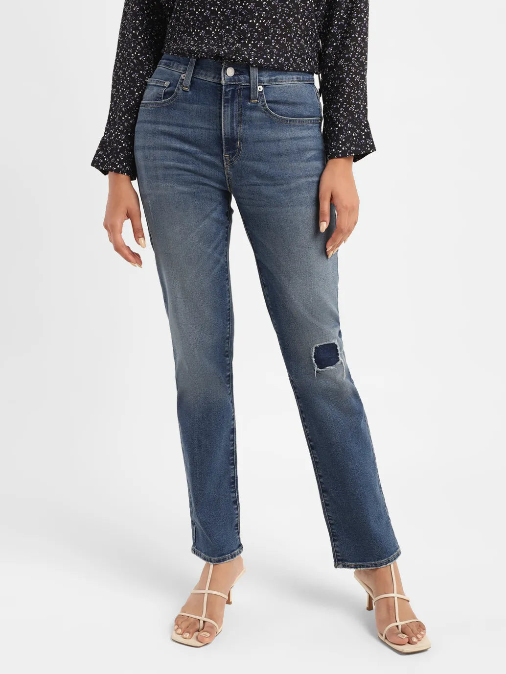 These everyday 724 jeans can become a sleek base for all your outfits. It's a versatile fit with a flattering high rise. Make your first impression the only impression with these stylish slim fit, blue jeans from Levis. Crafted in cotton blend fabric with a full length, it sports a mid-wash look. With just the right fit, it is perfect for the day as well as evening hangouts with your friends!
