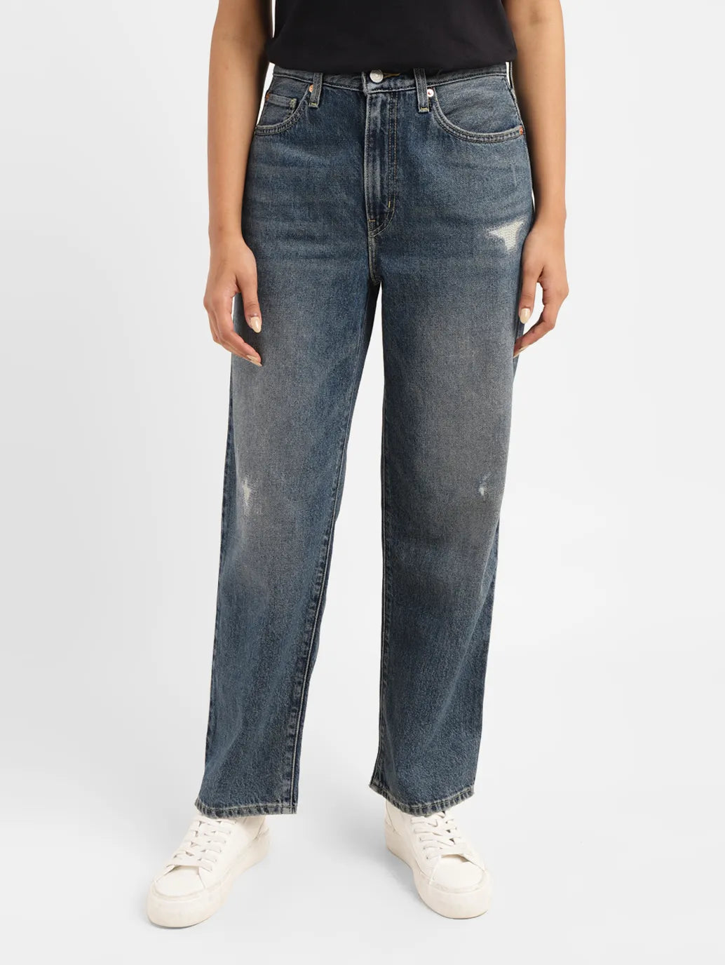With a figure-flattering high rise silhouette and plenty of adaptable pockets, Levi's improves denim style! These 94 baggy blue jeans feature button & zip at the front and a flattering waistband. The baggy fit style is just right for going out or staying in!
