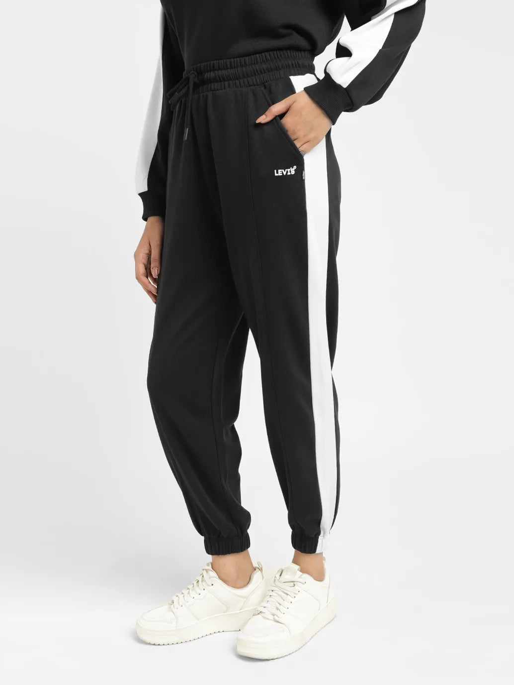 These Levi's joggers are made of a soft, durable cotton fabric that is great for all-day wear. It features a solid pattern and comes in the black color. Designed to be versatile, you can pair these high rise waist joggers with a denim jacket and any of your solid-colored tank tops.