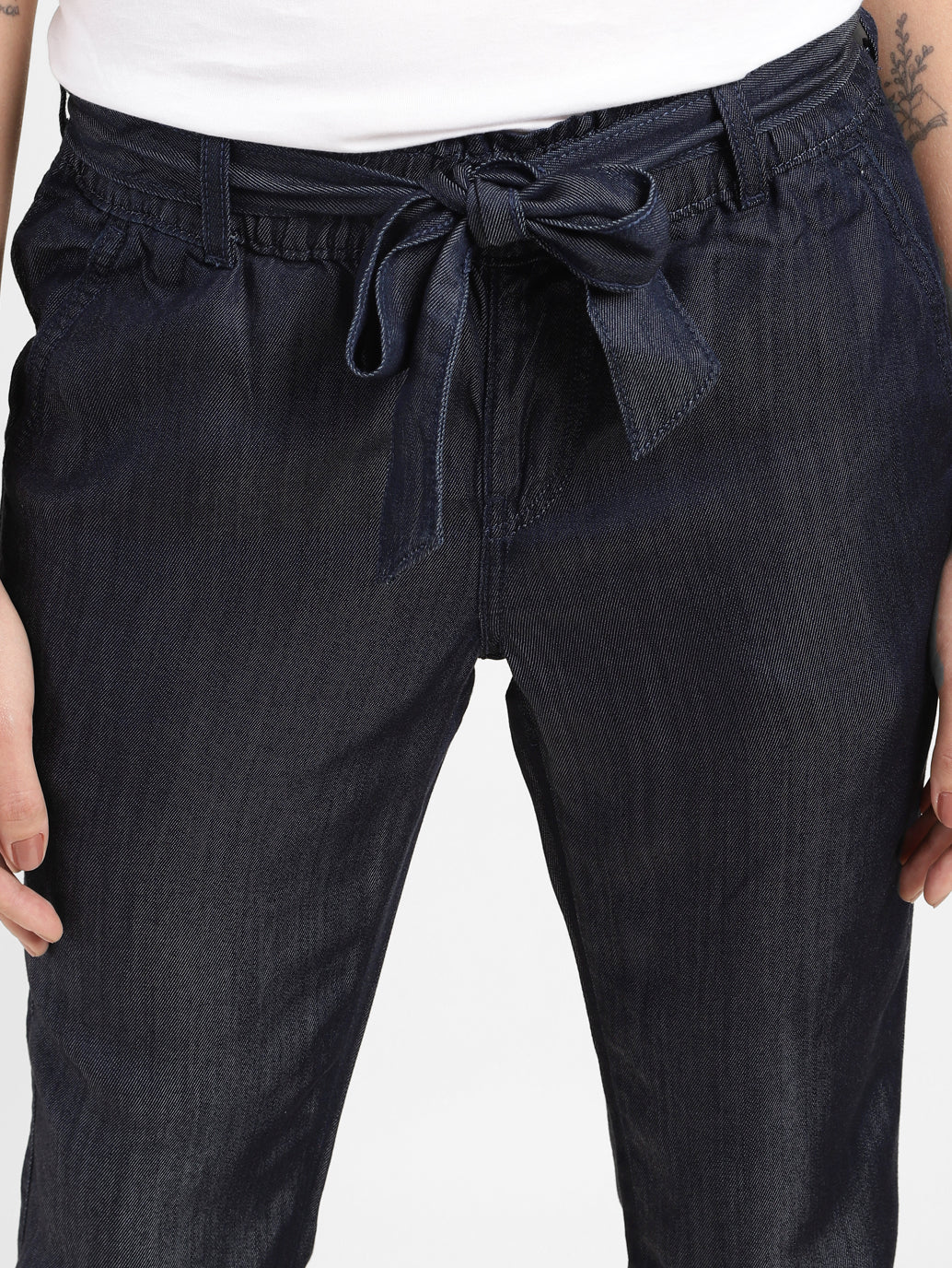 With a figure-flattering high rise silhouette and plenty of adaptable pockets, Levi's improves denim style! These dark indigo belted jogger features button at the front and a flattering waistband. The loose tapered fit style is just right for going out or staying in!