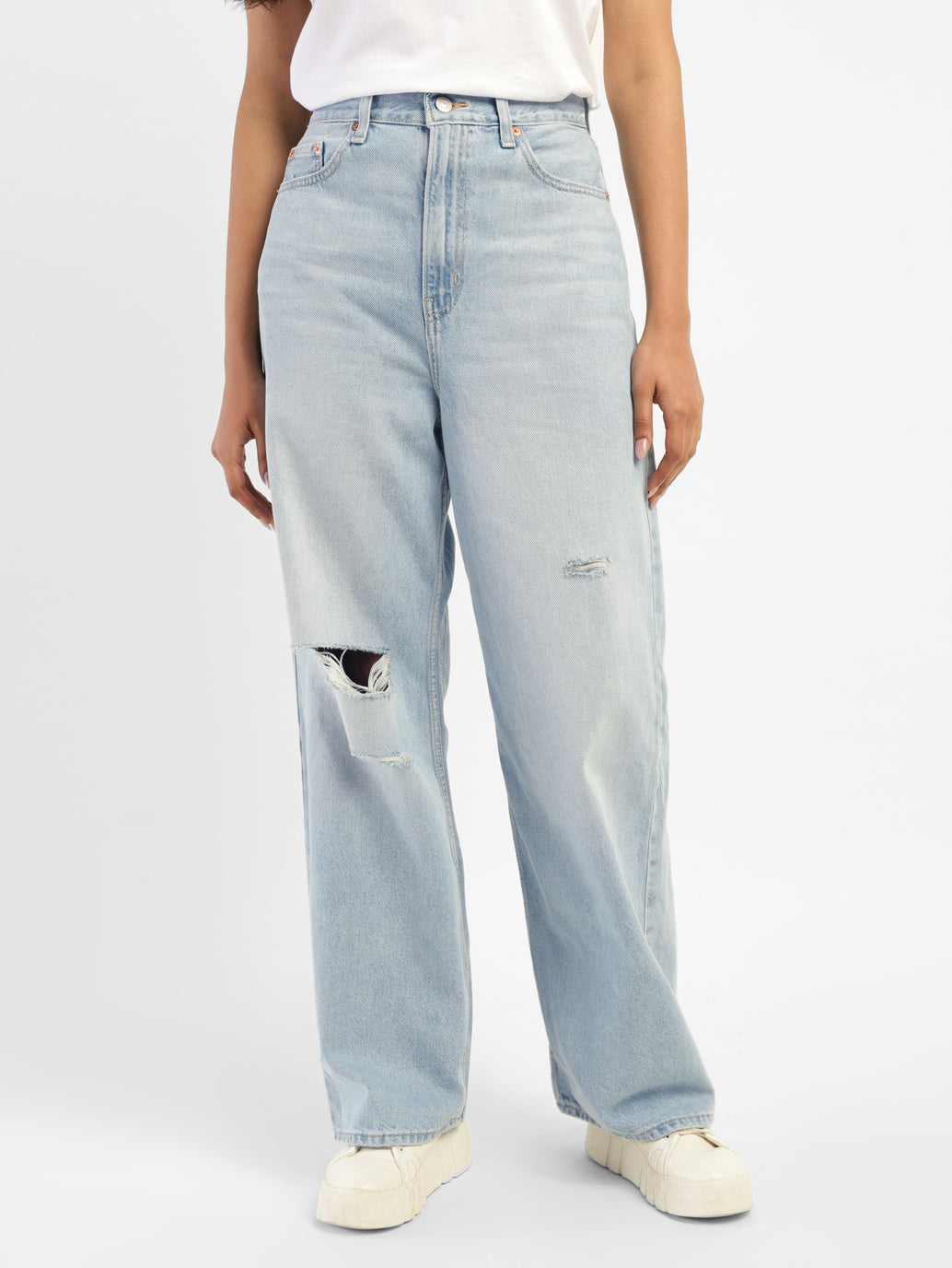 With a figure-flattering high rise silhouette and plenty of adaptable pockets, Levi's improves denim style! These bng high loose blue Jeans feature button & zip at the front and a flattering waistband. The loose fit style is just right for going out or staying in!