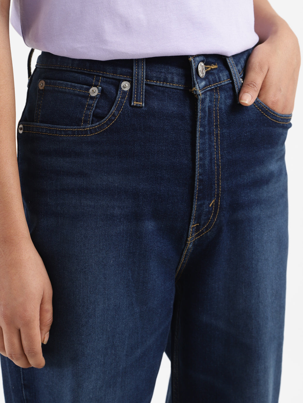 With a figure-flattering high rise silhouette and plenty of adaptable pockets, Levi's improves denim style! These mom navy Jeans feature button & zip at the front and a flattering waistband. The loose tapered fit style is just right for going out or staying in!