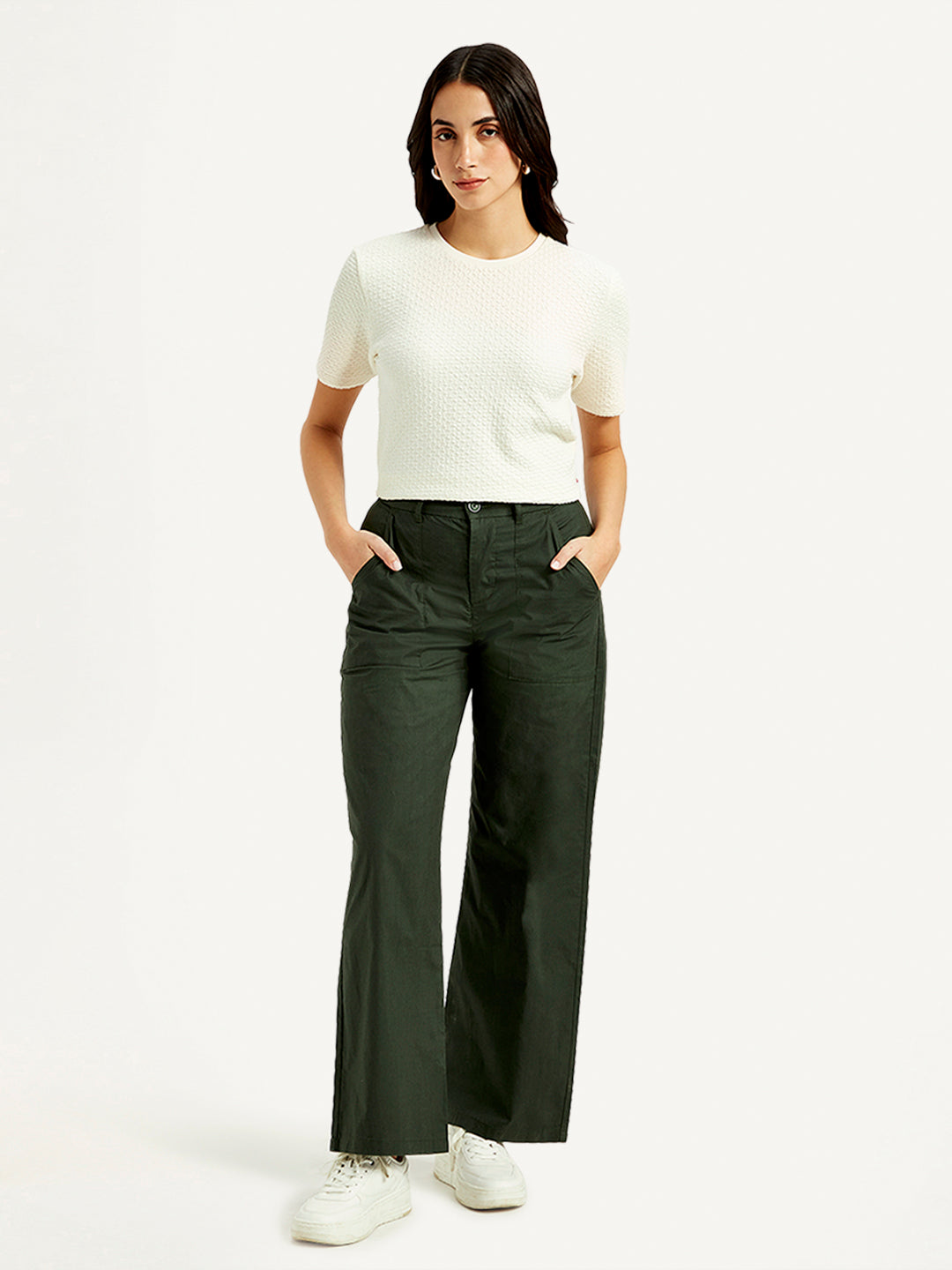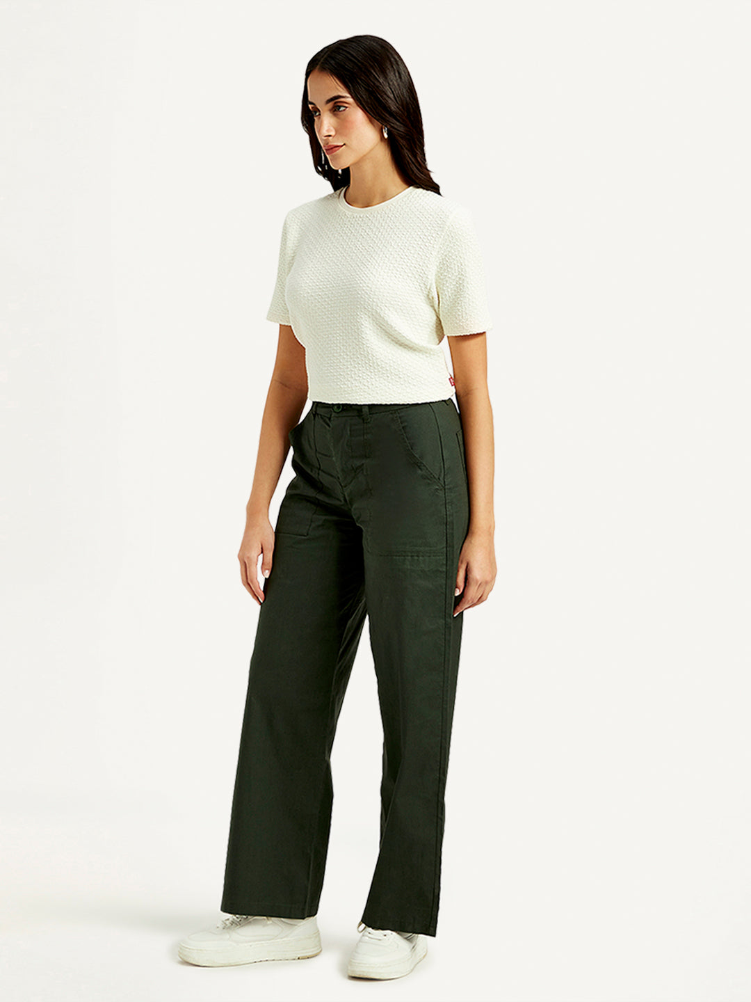 These Levi's green trousers will make you look great. Designed to flatter, they have a perfect straight fit and are made from high-quality cotton. Features a high rise waist.
