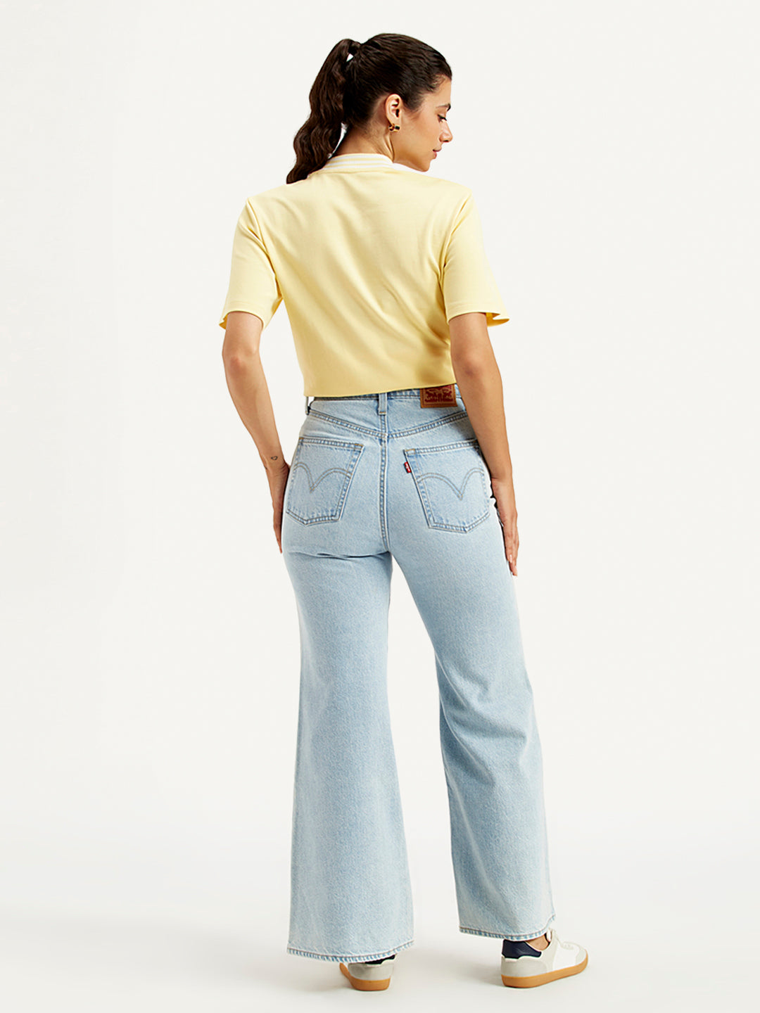 Women's Light Blue Ribcage Bell Bottom Wide Leg Fit High Rise Jeans