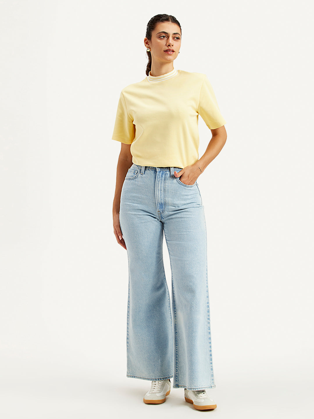 With a figure-flattering high rise silhouette and plenty of adaptable pockets, Levi's improves denim style! These ribcage bells blue Jeans feature button & zip at the front and a flattering waistband. The bootcut style is just right for going out or staying in!