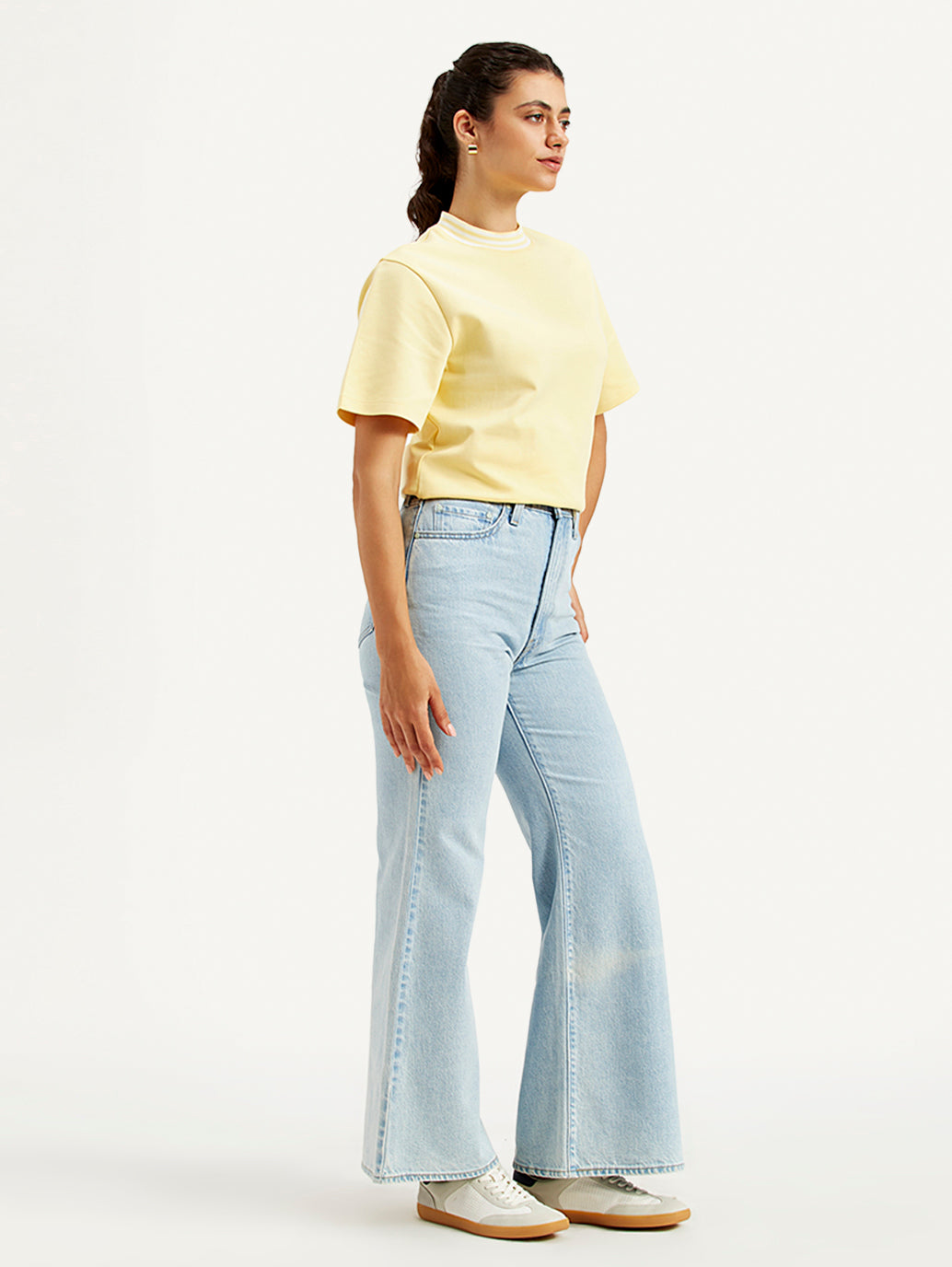 • Women's Light Blue Ribcage Bell Bottom Wide Leg Fit High Rise Jeans - Styleshot View