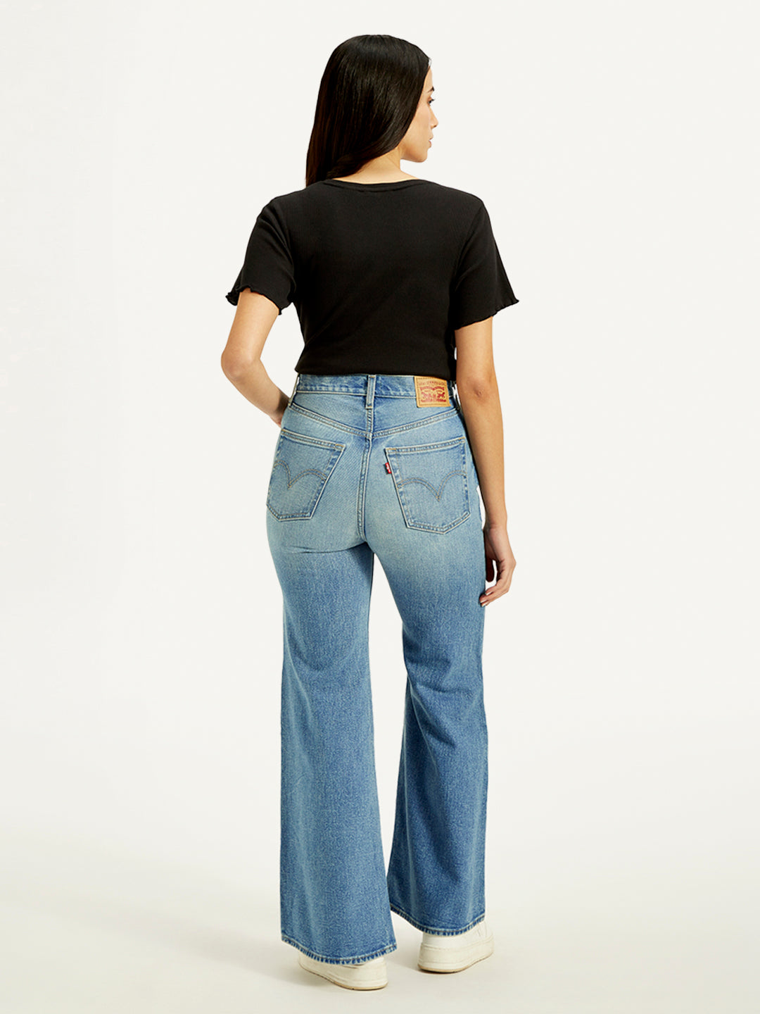 Elevate your everyday look with these women's bell bottom jeans. Designed with a high rise waist these jeans offer a sleek and modern fit. Made from premium denim, they provide a comfortable yet flattering look that moves with you.