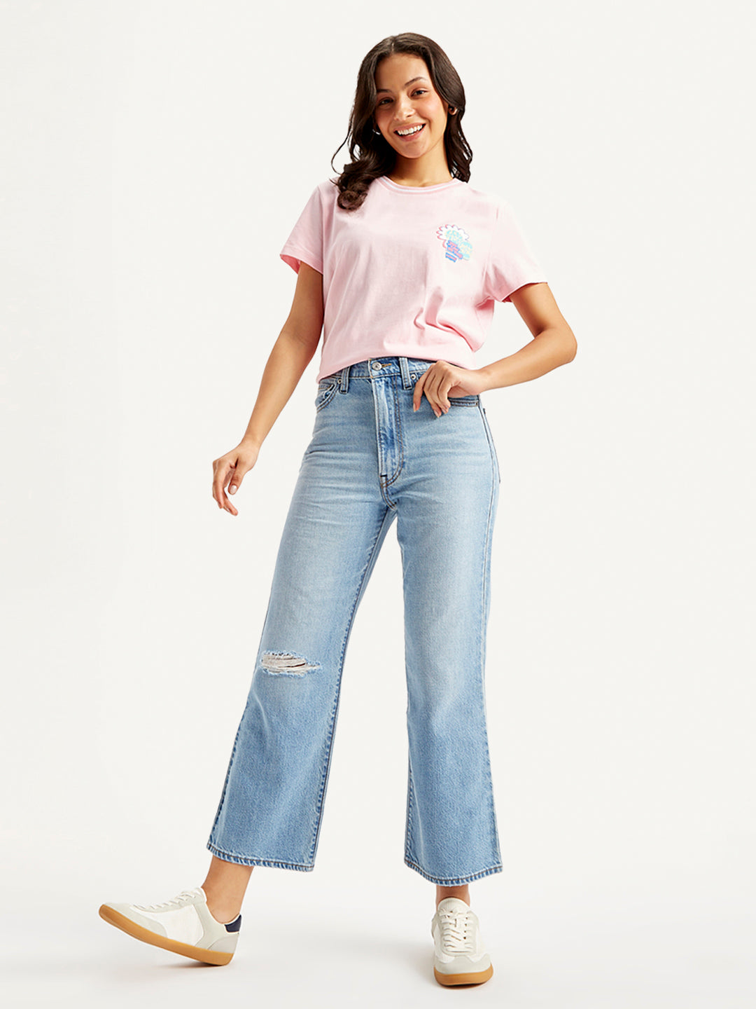 Women's Blue Ribcage Cropped Bootcut Fit High Rise Jeans