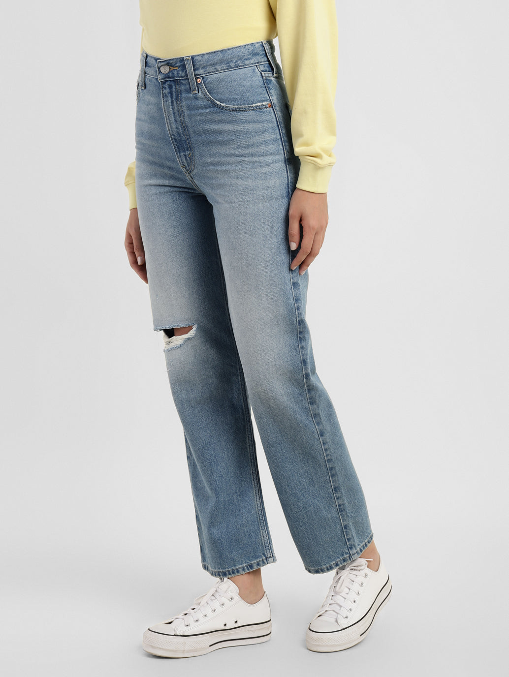 With a figure-flattering high rise silhouette and plenty of adaptable pockets, Levi's improves denim style! These ribcage straight light indigo Jeans feature button&zip at the front and a flattering waistband. The straight fit style is just right for going out or staying in!