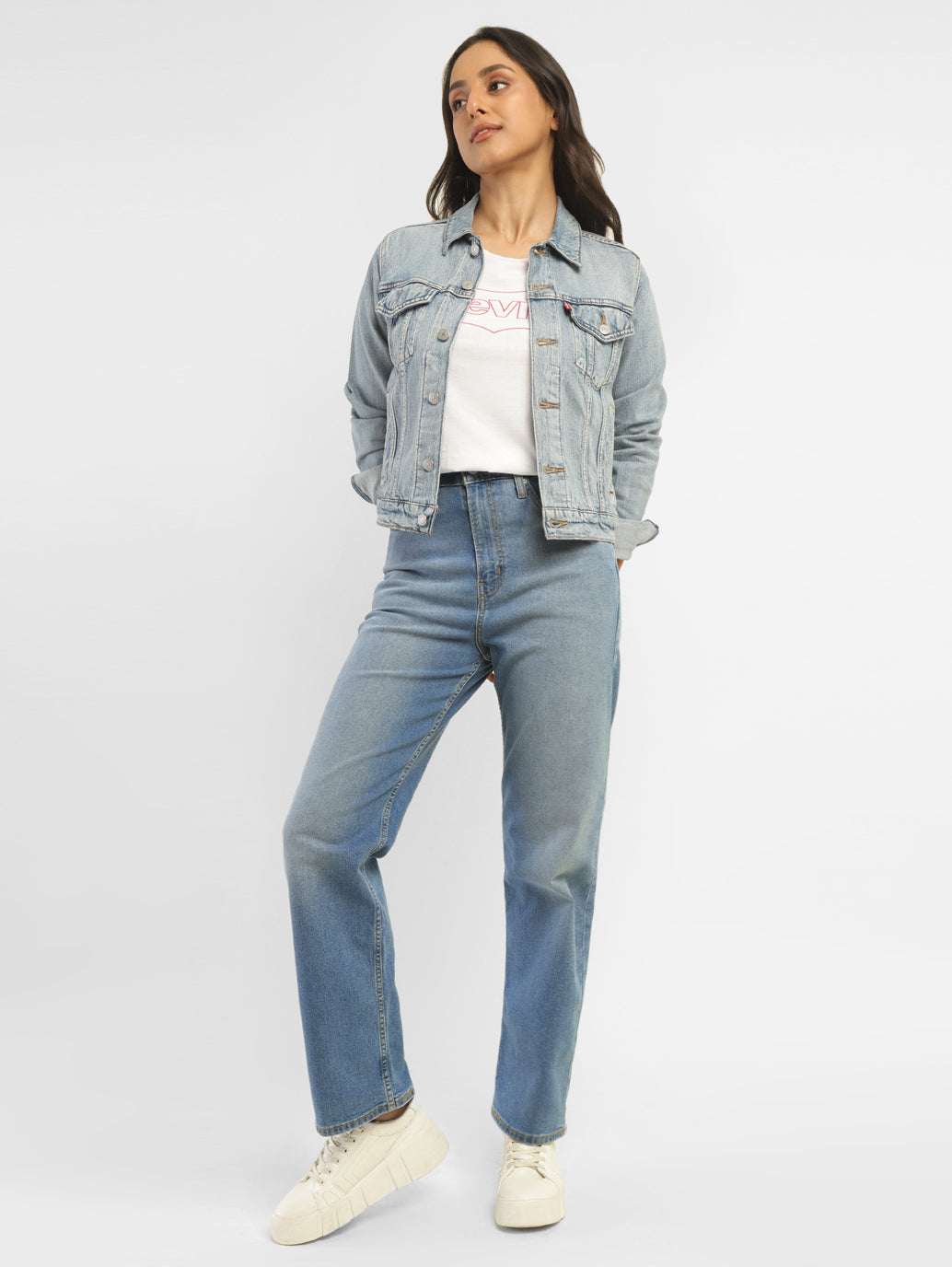 With a figure-flattering high rise silhouette and plenty of adaptable pockets, Levi's improves denim style! These ribcage straight blue Jeans feature button & zip at the front and a flattering waistband. The straight fit style is just right for going out or staying in!