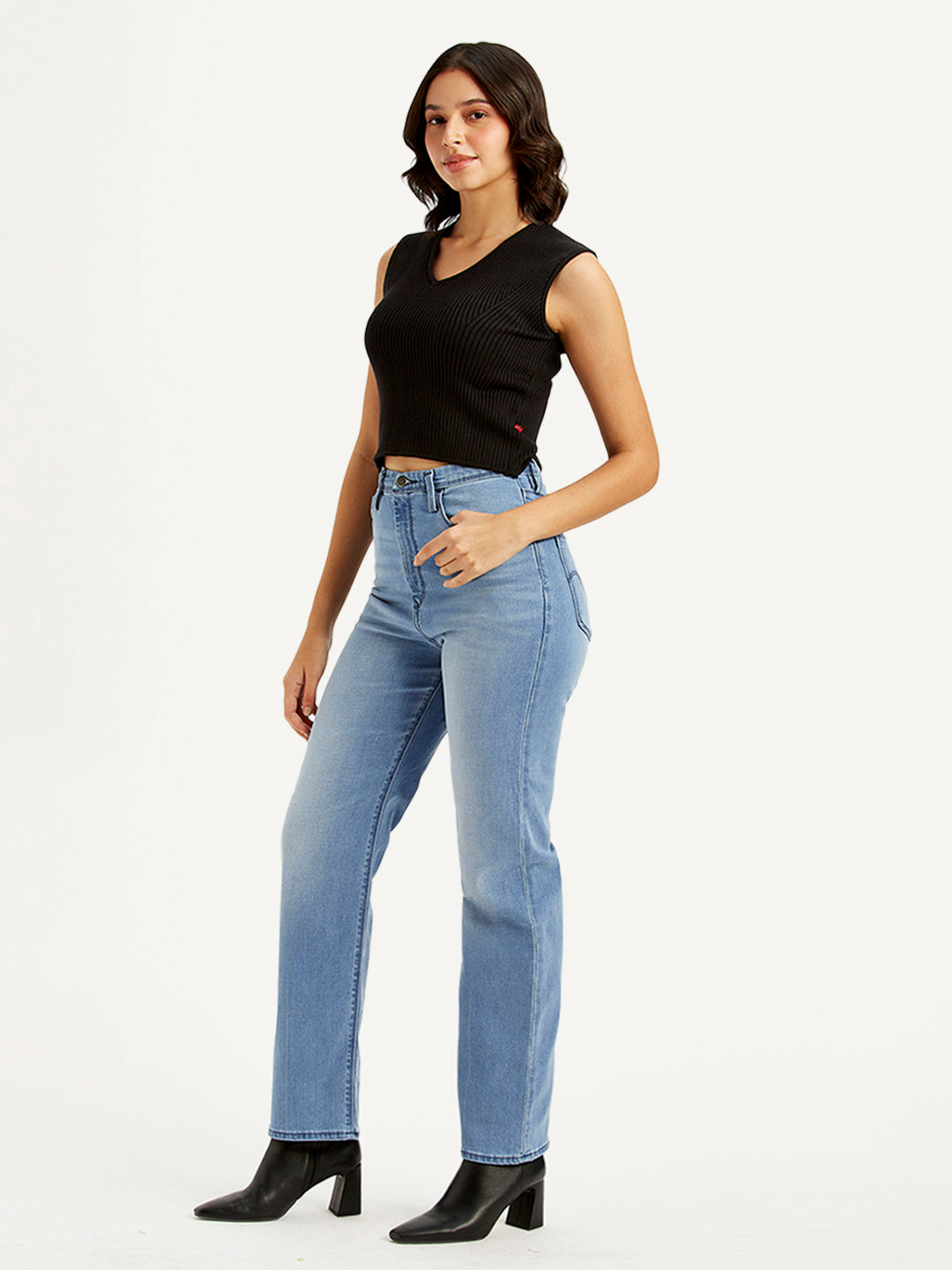 • Women's Light Blue Ribcage Straight Fit High Rise Jeans - 363c425e-b9cc-43f7-9a46-7f3a3d9e9b50 View