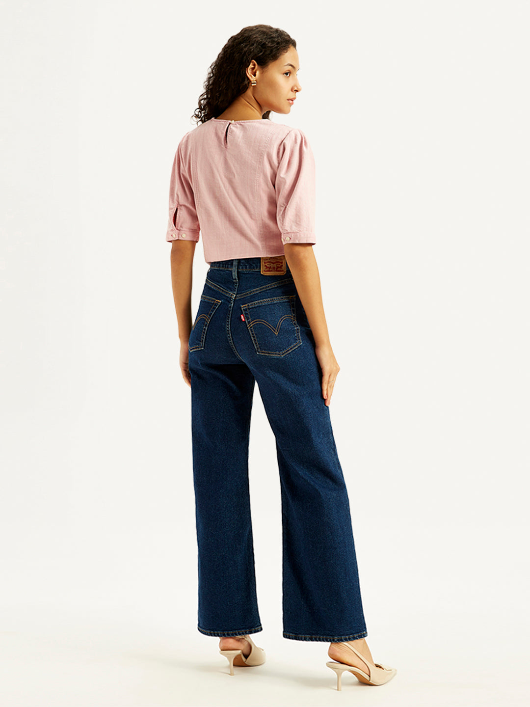 With a figure-flattering high rise silhouette and plenty of adaptable pockets, Levi's improves denim style! These ribcage wide leg navy Jeans feature button & zip at the front and a flattering waistband. The wide leg fit style is just right for going out or staying in!