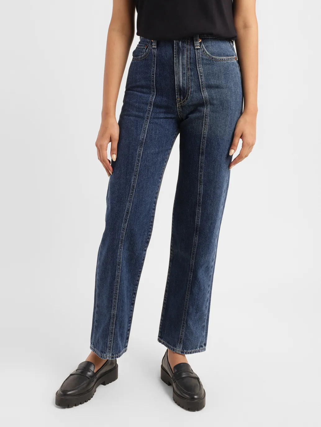 1. Straight fit; Sits at high rise