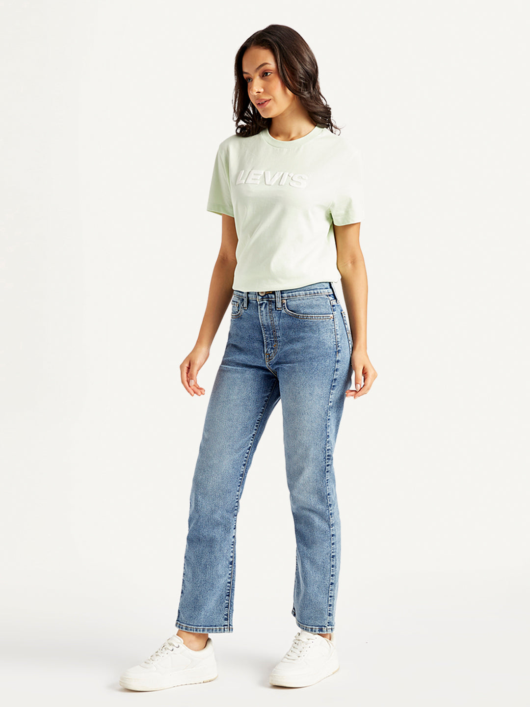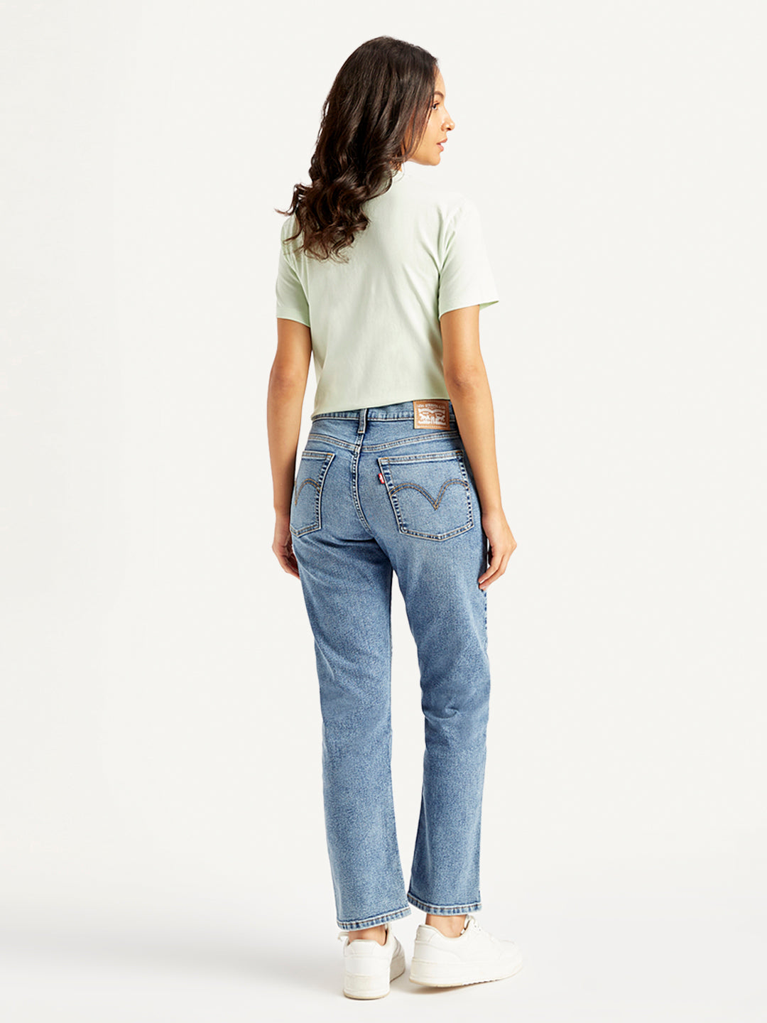Elevate your everyday look with these women's wedgie straight fit jeans. Designed with a high-rise waist these jeans offer a sleek and modern fit. Made from premium denim, they provide a comfortable yet flattering look that moves with you.
