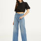 1. Classic wide leg; Sits at high rise 2. Team it with our brand logo t-shirt and denim jacket for a casual look