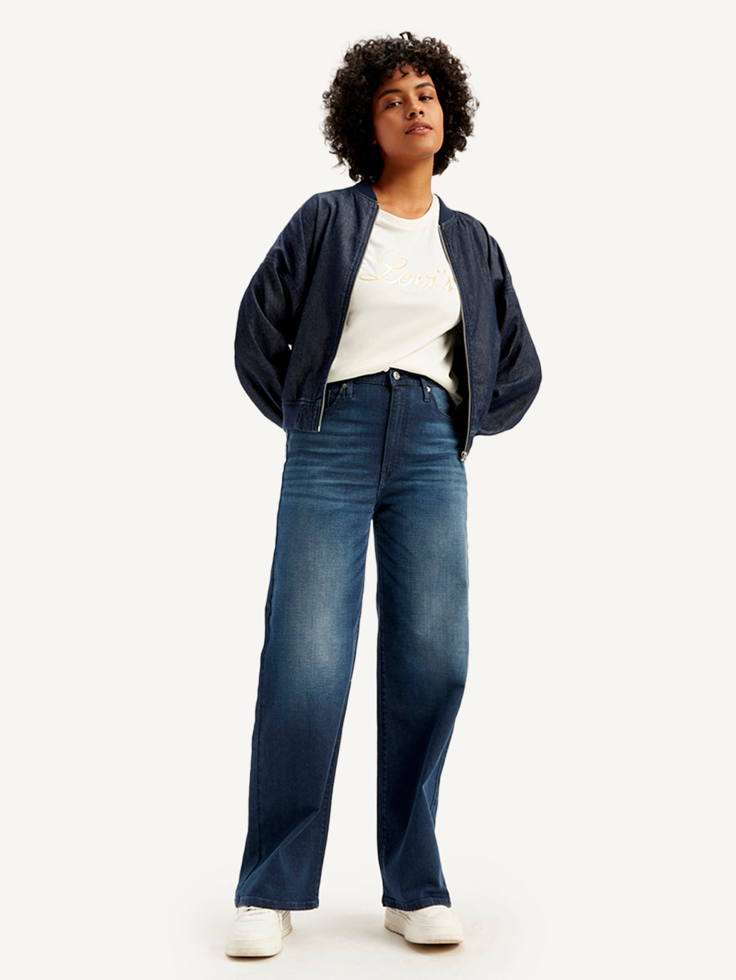 With a figure-flattering high rise silhouette and plenty of adaptable pockets, Levi's improves denim style! These hr wide leg navy Jeans feature button & zip at the front and a flattering waistband. The wide leg fit style is just right for going out or staying in!