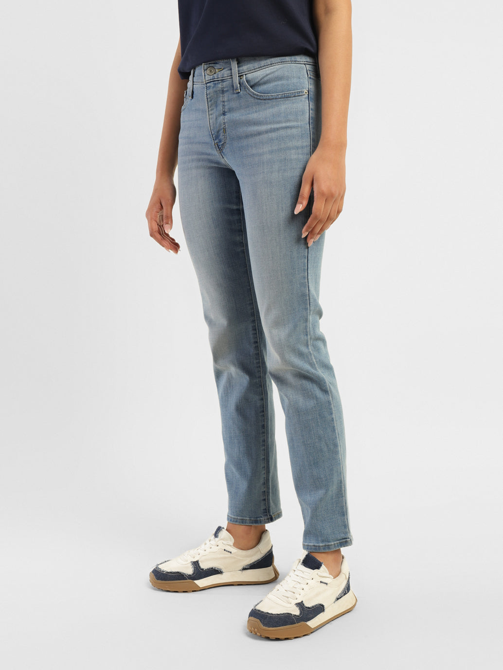 A fit that Flatters. It has all the features of our 312 Straight Fit Jeans but with a slim fit leg. These revamped 312 slim fit jeans are all you need to update your year-round wardrobe. With the blue solid pattern, these medium shade jeans are totally in sync with the latest fashion trends. Further, the premium quality blended fabric makes these pants truly comfortable and easy to wear for long hours. 1. Mid Rise, Sits at waist 2. Gives all the mobility & comfort you need. 3. Innovative tummy slimming panel