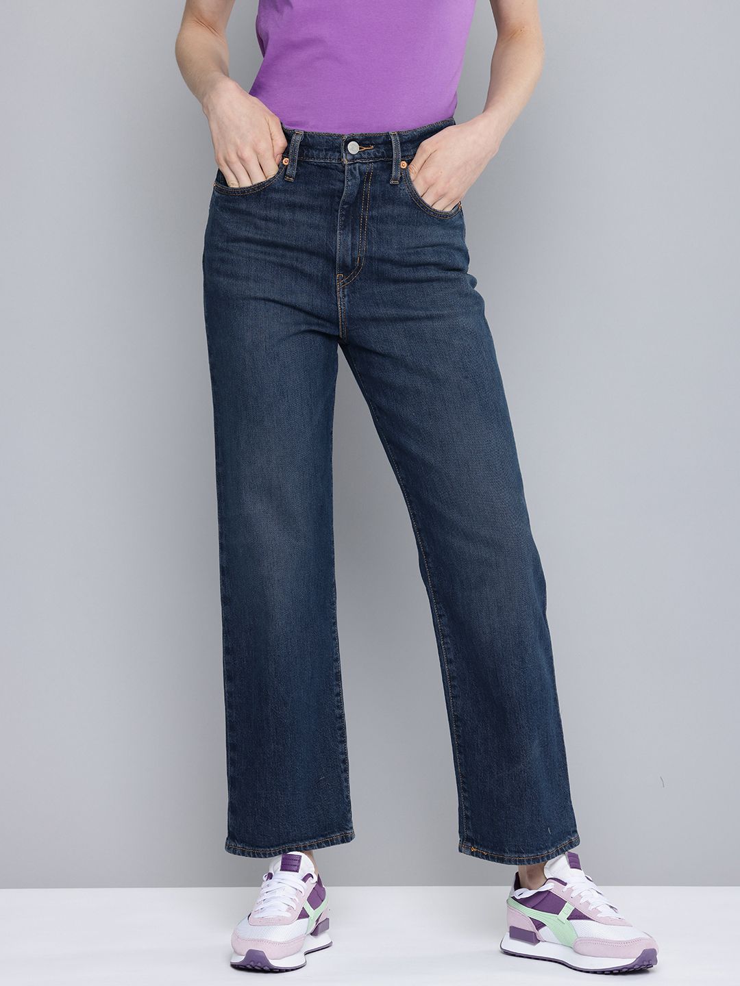 • Women's Blue Ribcage Straight Ankle Fit Mid Rise Jeans - 989abebd-b2d7-49f9-b088-599b19f374ec1715768408287-Levis-Women-Jeans-2801715768407795-2 View
