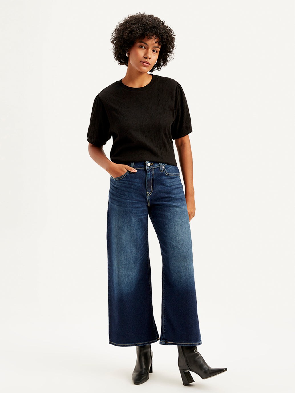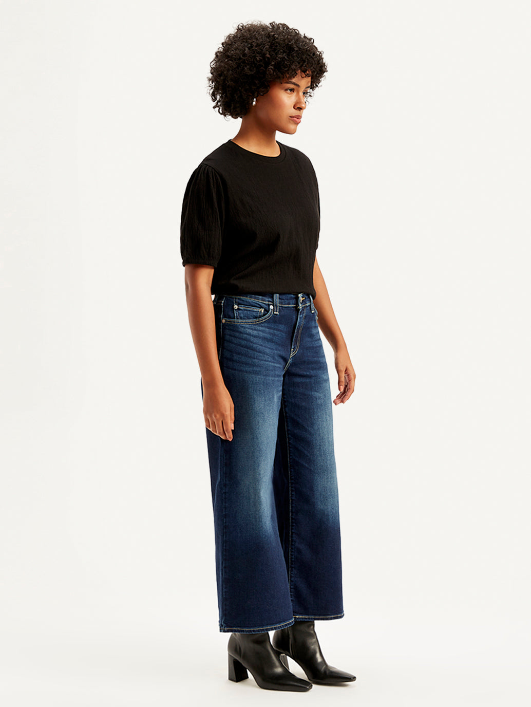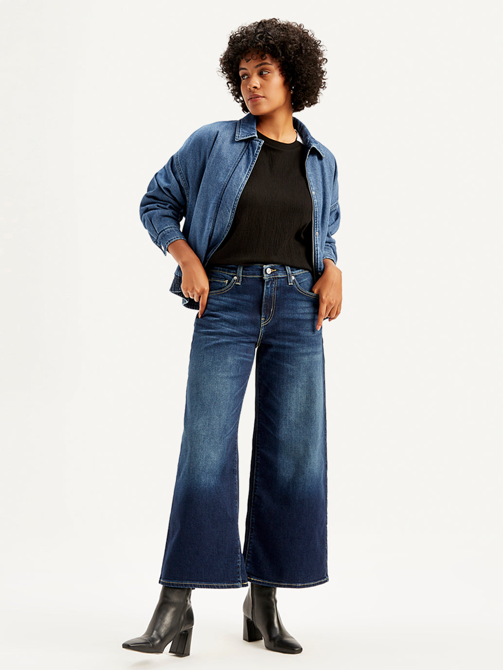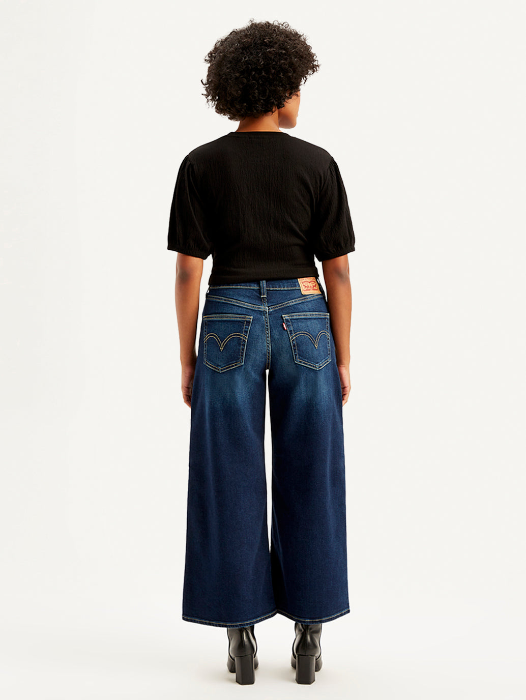 With a figure-flattering mid rise silhouette and plenty of adaptable pockets, Levi's improves denim style! These 94 baggy wide leg indigo Jeans feature a flattering waistband. The baggy fit style is just right for going out or staying in!
