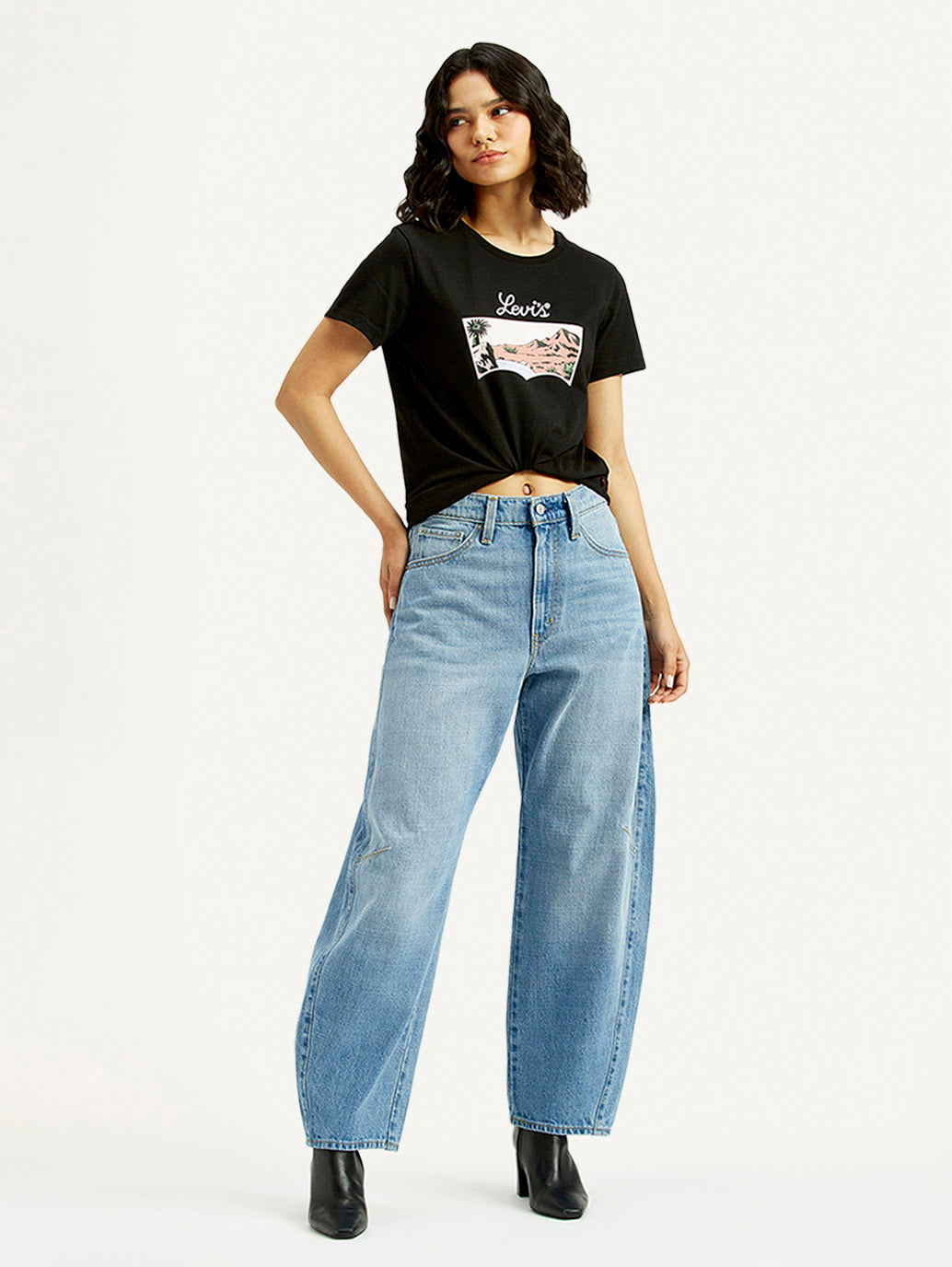 Women's Cinch Light Blue Barrel Loose Fit Mid Rise Jeans