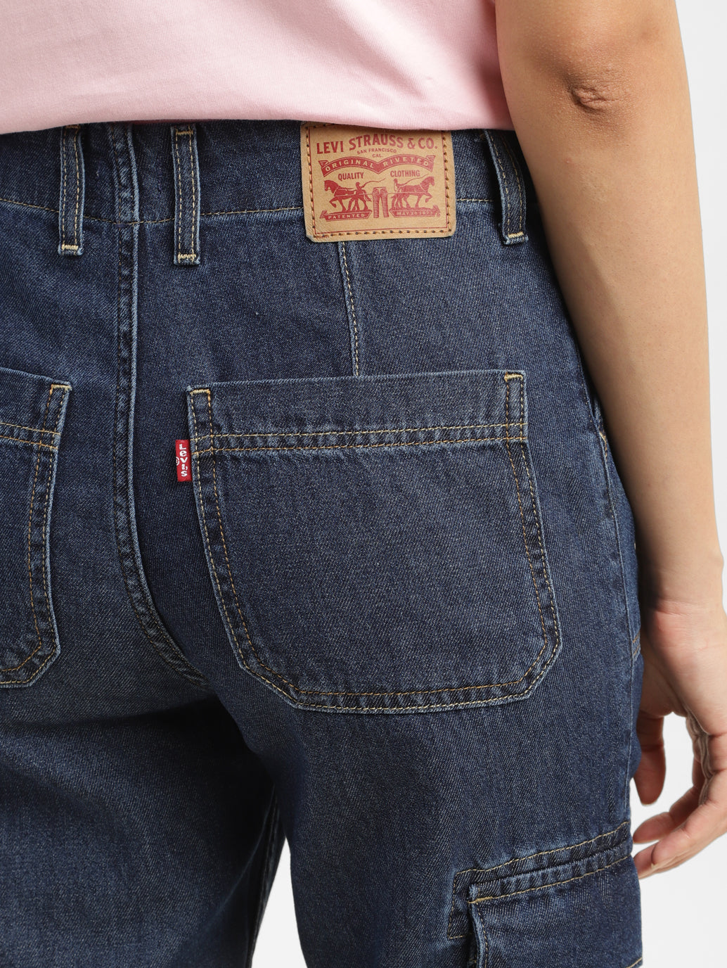 Women's Mid Rise Navy Cargo Jeans