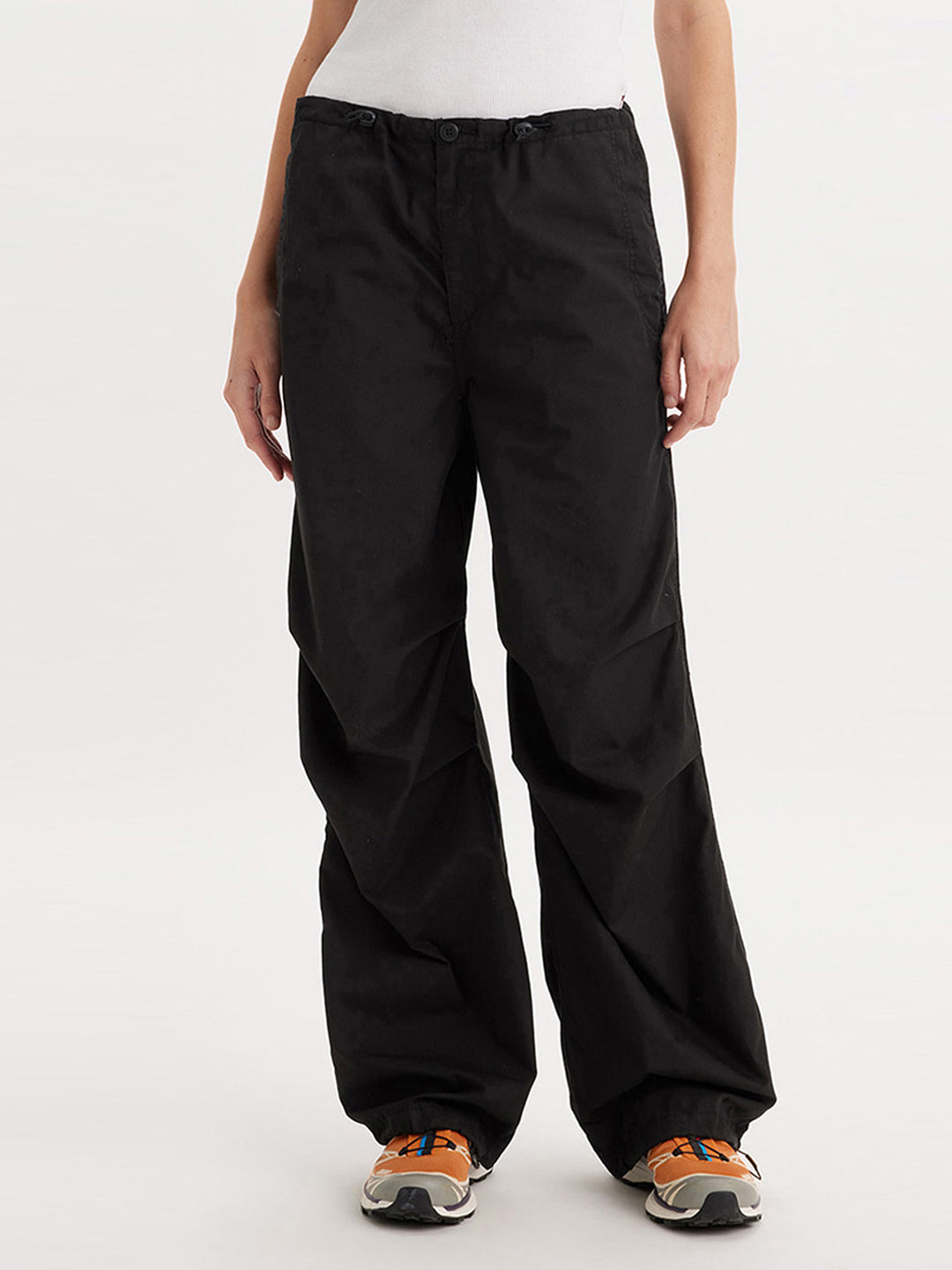 Levi's brings to you this must-have black cargo trousers in solid pattern. These are tailored for a baggy fit with a mid rise waist. These comfortable cargo trousers will keep you comfy yet stylish.