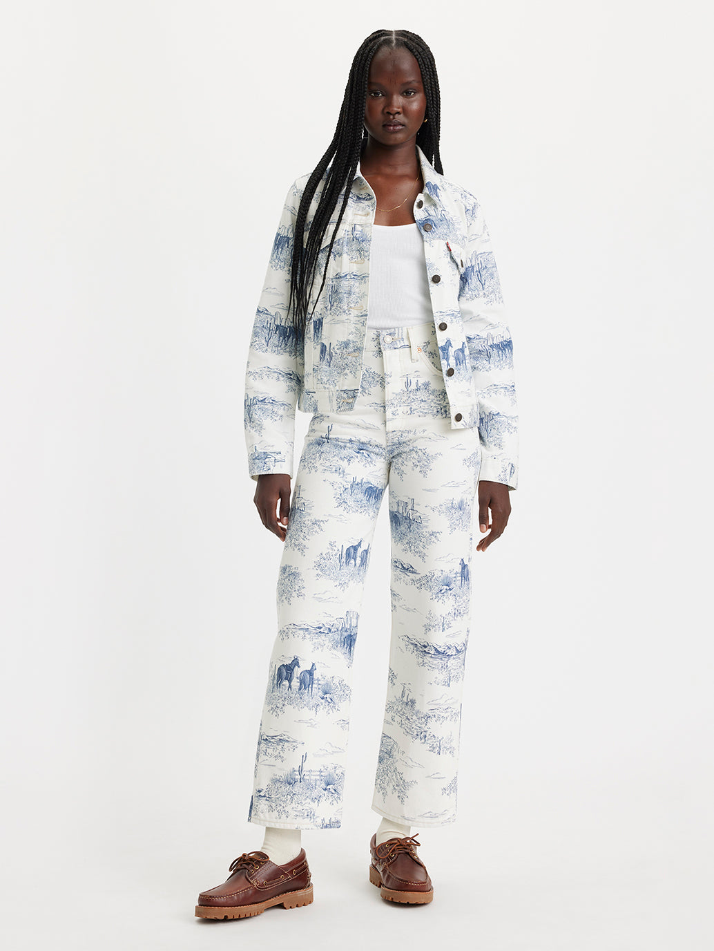 With a figure-flattering mid rise silhouette and plenty of adaptable pockets, Levi's improves denim style! These ribcage straight ankle white Jeans feature zip at the front and a flattering waistband. The straight fit style is just right for going out or staying in!