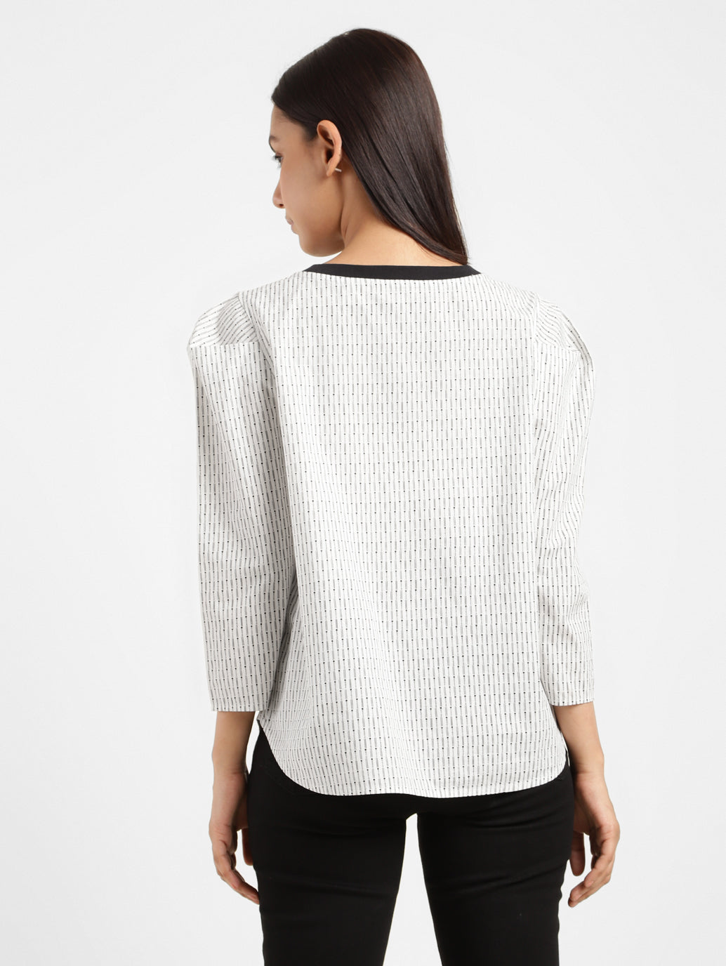 - Features a crew neck and 3/4th sleeves which are easy to style