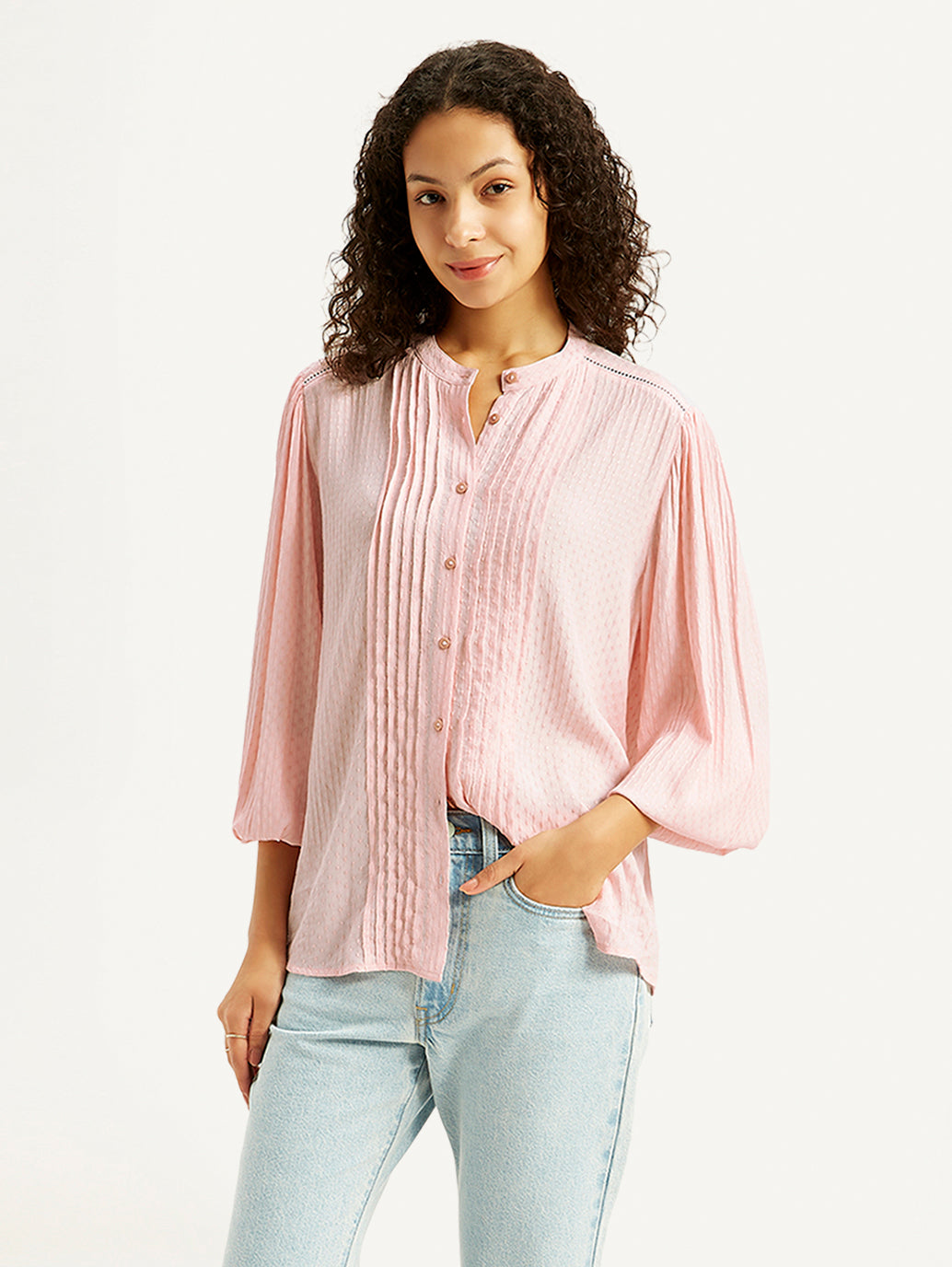 This pink self pattern top from Levi's, seems like it was designed to find a space in your 'weekend-only' casual wardrobe this season. Made from good-quality lyocell, viscose fabric, this top is cut in a regular fit.