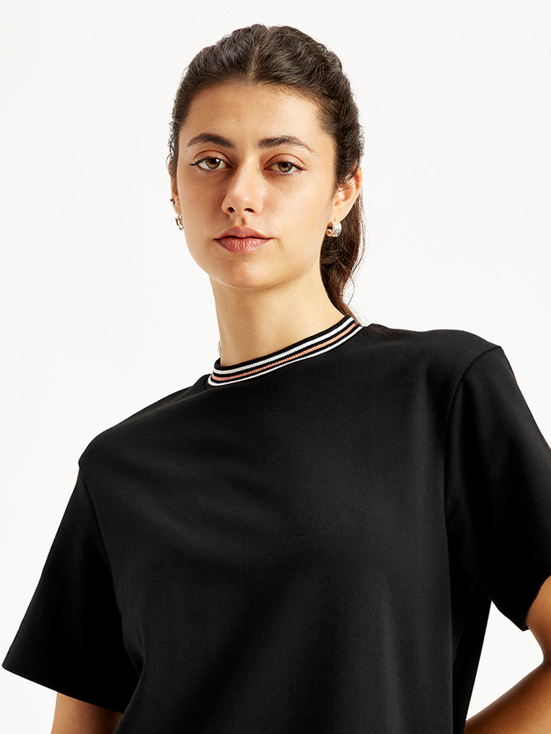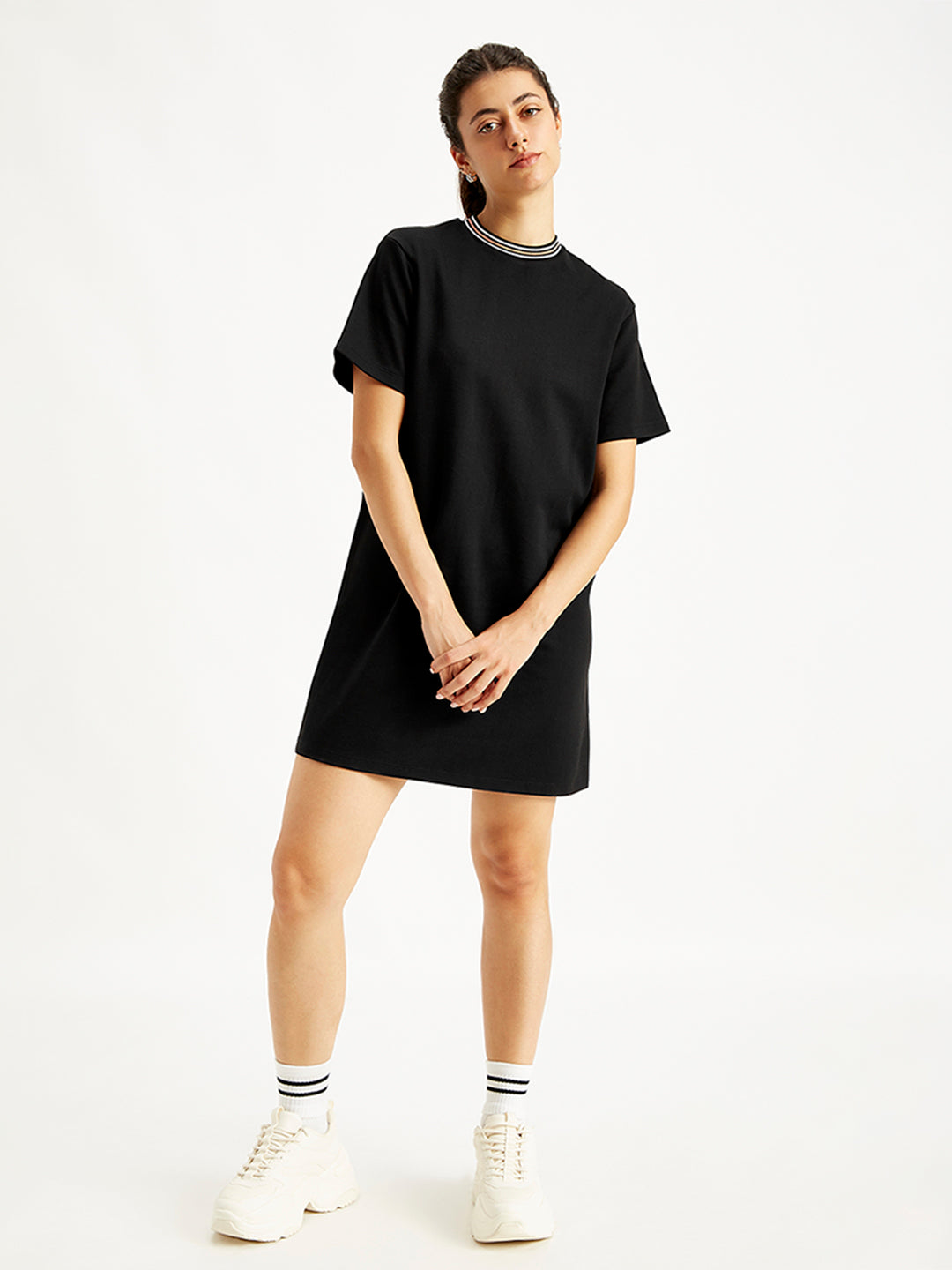 • Women's Solid Black Crew Neck Dress - Styleshot View