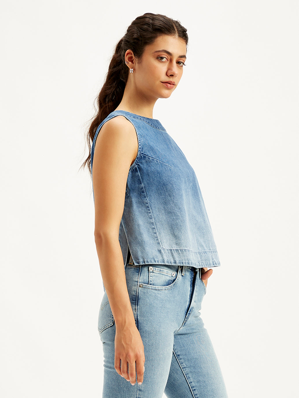 When there is something worth celebrating, lift your spirits with this solid top by Levi's. If you love easy-to-wear pieces that make a statement, be sure to add this blue top into your casual wardrobe! With sleeveless sleeves and a round neck, this top will fetch you compliments for your sense of style.