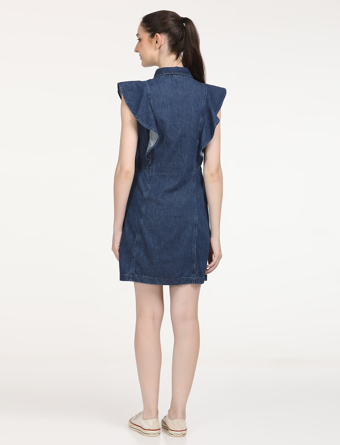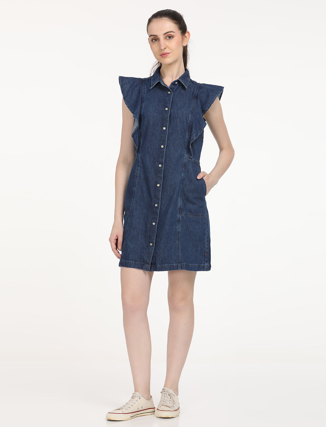 Keep it casual and cool with this blue solid dress by Levi's. Designed to keep you comfortable all day long, it features a spread collar and short sleeves sleeves