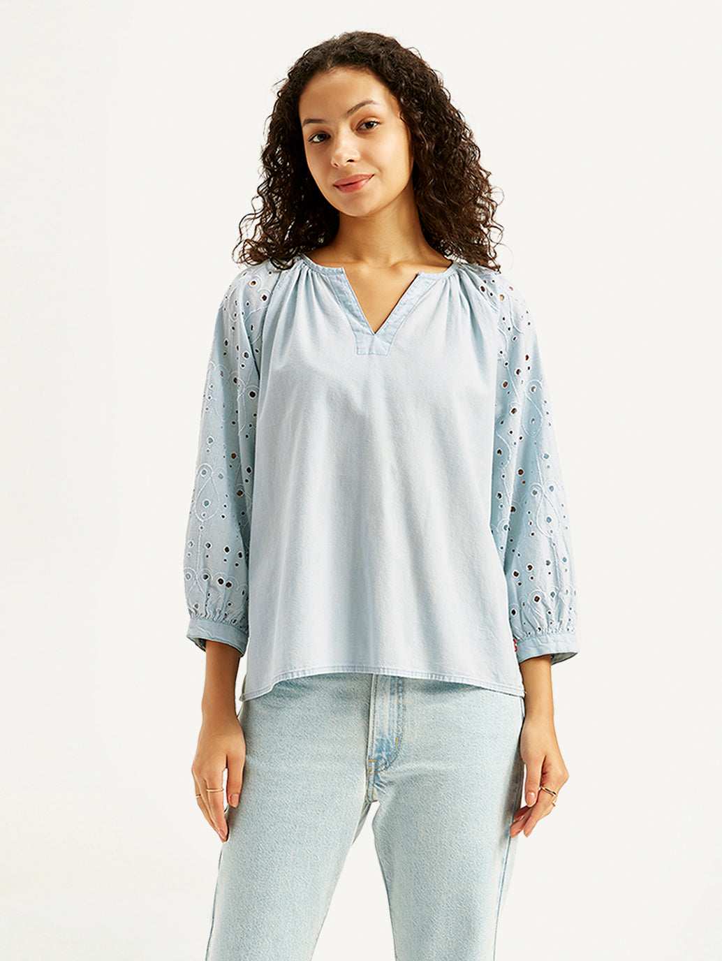 When there is something worth celebrating, lift your spirits with this Solid top by Levi's. If you love easy-to-wear pieces that make a statement, be sure to add this Blue top into your casual wardrobe! With Three-Fourth sleeves and a V-neck, this top will fetch you compliments for your sense of style.