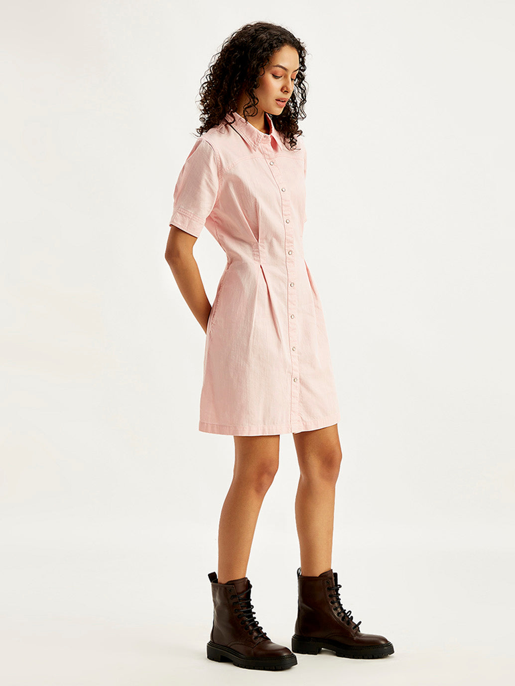 Keep it casual and cool with this Light Pink dress by Levi's. Designed in cotton to keep you comfortable all day long, it features a spread collar and half sleeves.