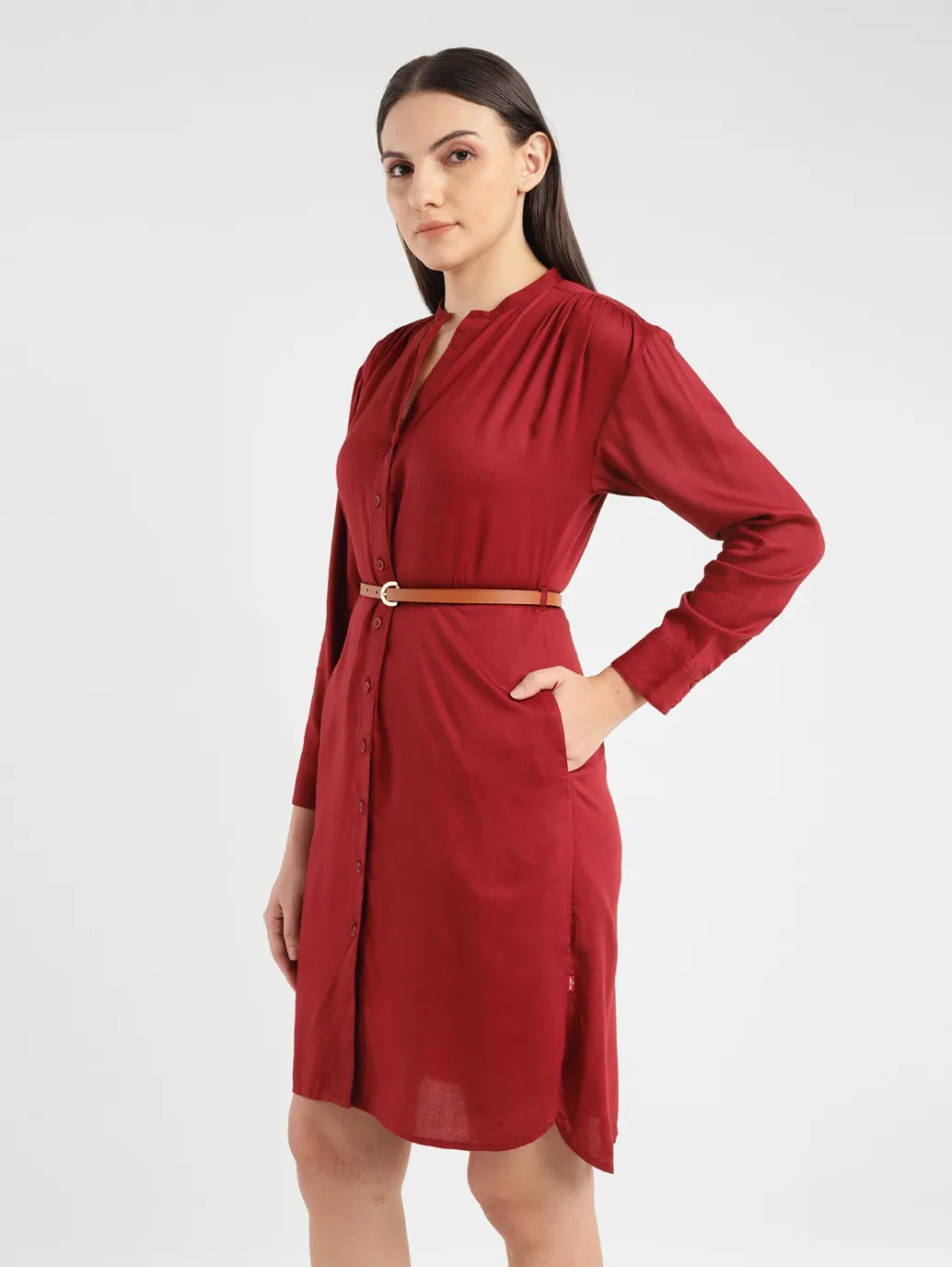 Add this statement piece designed by Levi's to your wardrobe. Ideal to wear during the warmer days of the year, this red color dress features a band neck and full sleeves. The above-knee length design makes it easy to pair with both sandals and shoes. Don't forget to accessorize!